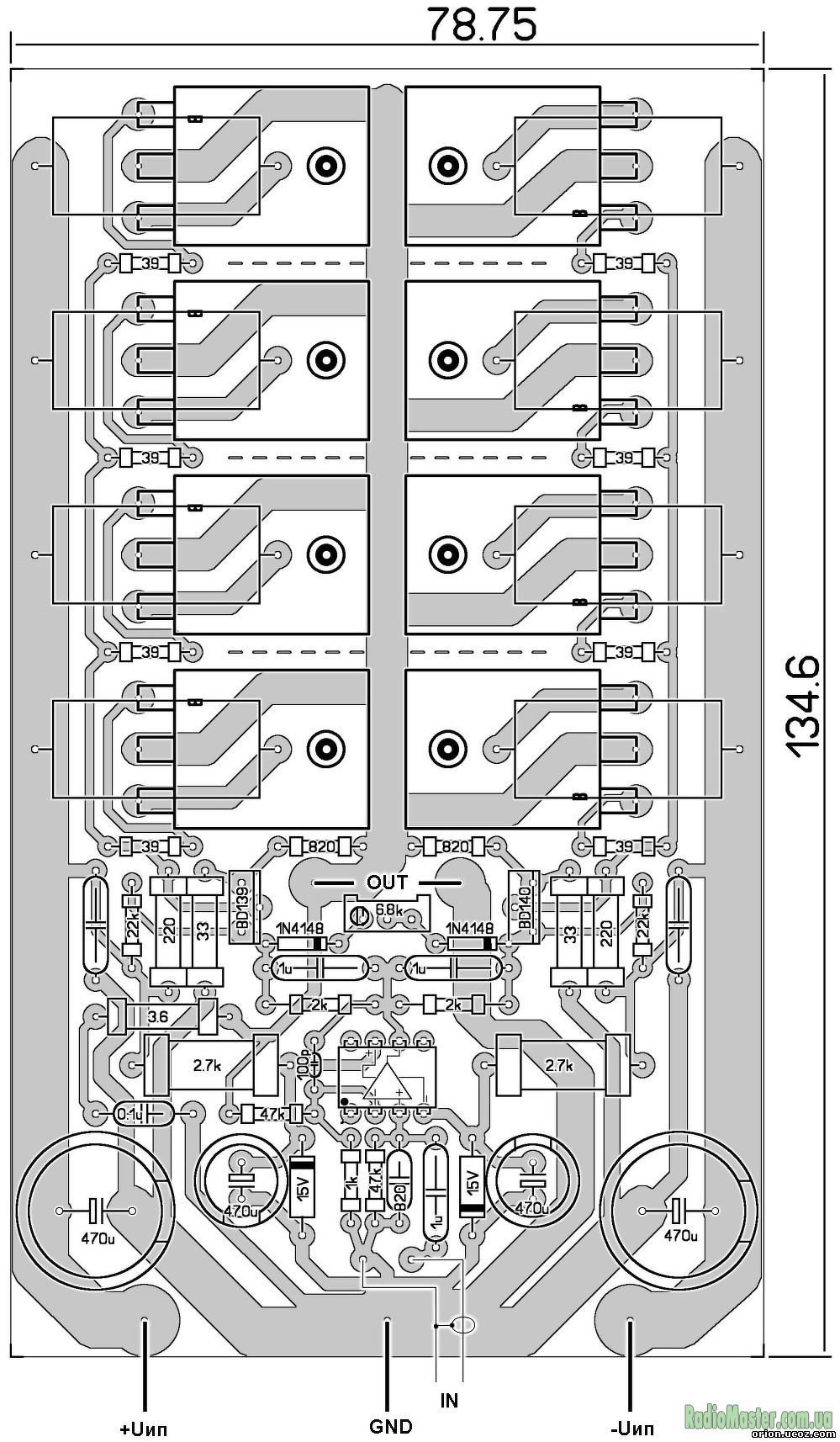 A tápfeszültségem +-48V,sikerült ma feléleszteni a végfokot,szól is szépen.Nekem viszont 4Ohm os mély ládám van,így 2db teljesen egyforma panelt párhuzamosítottam.Igaz utólag esett le hogy Darlington tranzisztorok vannak benne így nem volt garantált hogy szép hangja lessz.Viszont gyönyörű szépen szól,egyszerre melegszik mind a 2 végfok.A két végfok kimenetét egyenként egy 0.22 Ohm 10W ellenálláson keresztül közösítettem.A darlingtonok miatt várható később valami hiba?