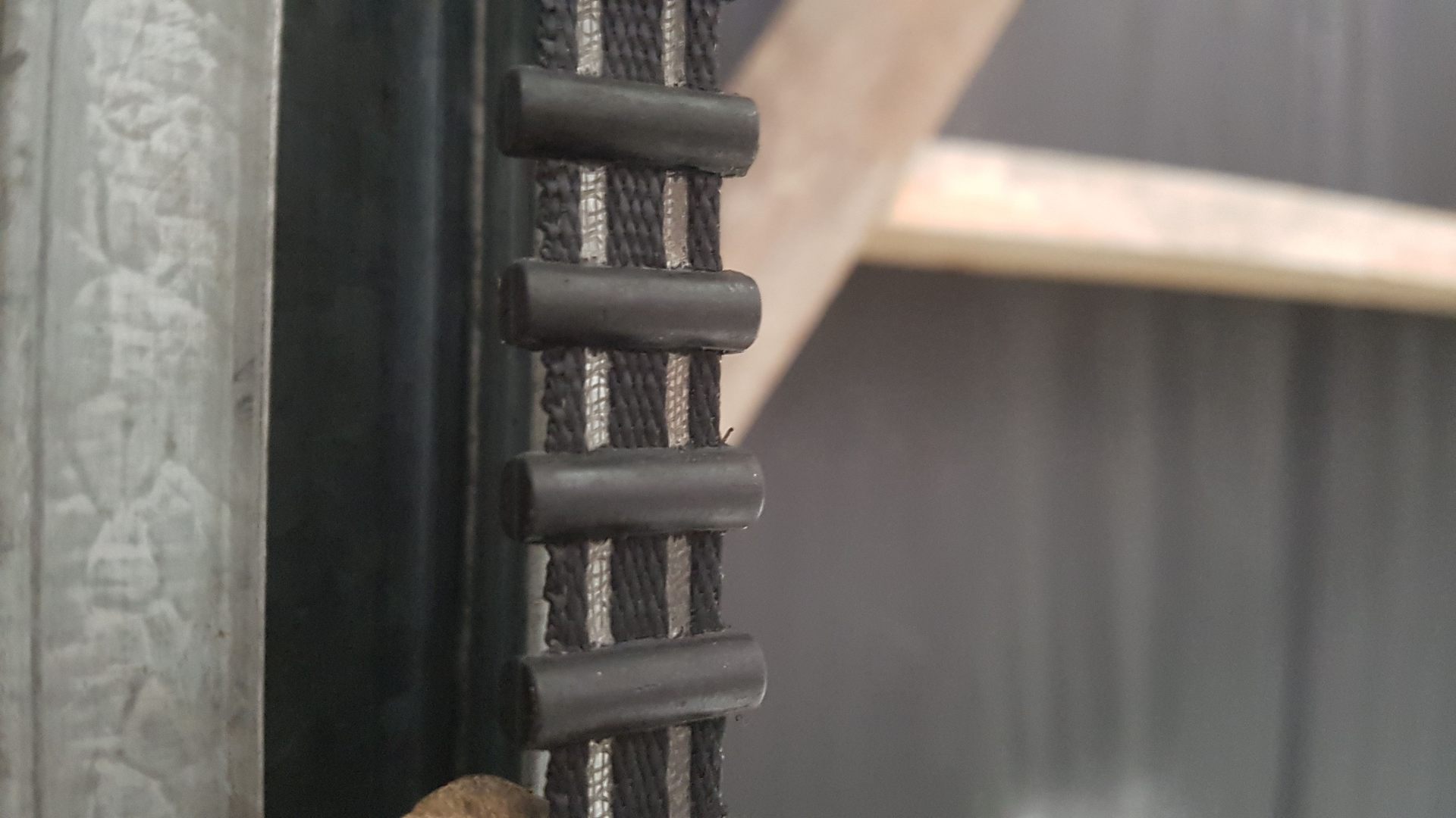 Én találkoztam már párral. Ezeknél a referenciapont még a Marantec-es régi megoldás, bár ott más bordásszíjat alkalmaztak és nem ezt. Azon hagyományos bordásszíj volt a hátulján egy bütyökkel, ami megnyomta a mikrokapcsolót. Ebben is hasonló volt a megoldás, csak itt már az újabb általánosan a hörmann által használt műanyag bordákkal ellátott kevlár szíj van.