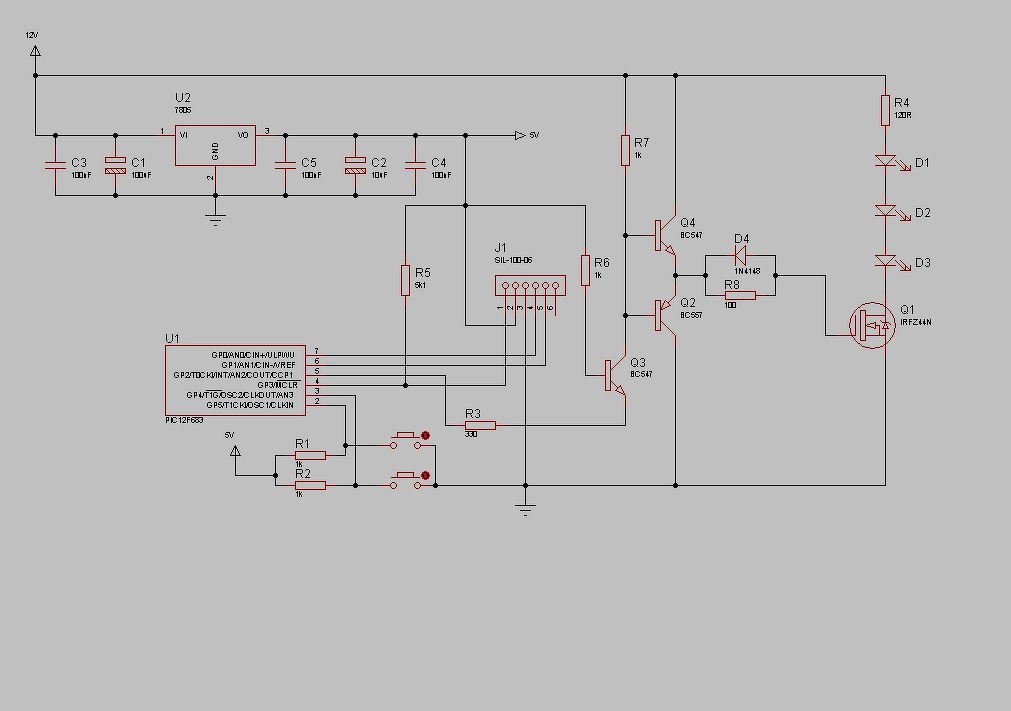 Az egytranzisztoros kapcsolásban a PIC nem lesz túl boldog, ha 12V-ot akarsz elnyeletni vele. Így felesleges a stabkockával óvatoskodni. A második kapcsolásról annyit, hogy még a 120W összteljesítményű ledes reklámvilágítás PWM szabályzásához sem építettem ilyen bonyolult áramkőrt.