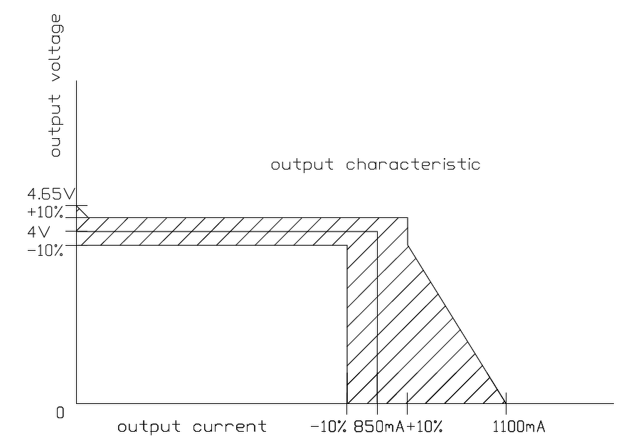 A kérdéssel kezdem: L200 jó lehet ide? Van (volt) egy speckó töltőtrafóm Li-ion cucchoz amit pótolni kellene. Találtam róla karakterisztika diagramot (lásd: kép), ami alapján az ideális görbe inkább egy fix értékekkel dolgozó labortápra hasonlít: 4.0V és 850mA. Mind a feszültség, mind az áram a teljes tartományban +/- 10%-ban eltérhet, illetve az efölötti tartományban feszültségesés mellett megengedhető nagyobb áram is (1100mA). Gyanítom hogy az általam készített új töltőnél elég, ha a besatírozott részen belül marad a kimenő feszültség+áram karakterisztika, nem kell az 1100mA-es részt tudnia. Amúgy szétszedtem a céleszközt (vaku), mert nem hiszem el hogy 4.0V elég lehet. Valóban nem, mert egy step-up konverter 4.9V körüli feszkót állít elő, és csak utána jön a töltőáramkör... |