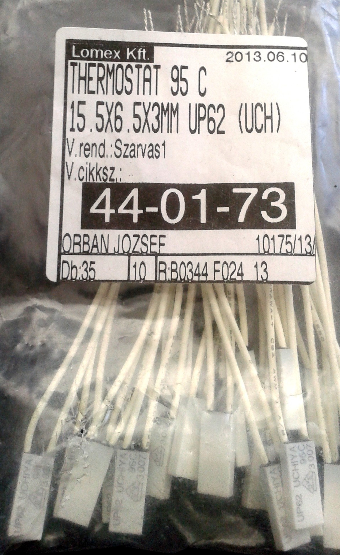 A termosztát mindenképpen hasznos, de a 95 fokot én sokallom, inkább valami 70 fok körülit tennék oda, mert ha 95 fok a borda, akkor a lapka attól már jóval melegebb, megfőhet. A hestore-ban szokott lenni nagyobb méretű csavaros, talán valami 65-75 fok körüli, kinézetre ugyanaz mint ami a mikrosütőkben van.