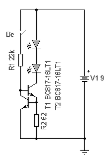 Ha még sem, akkor használhatod az optót. Ekkor a kapcsoló helyére kerül az opto tranyója (kollektor a 9V-ra, emitter a 22k-ra.) Ekkor az emitter és a 9V negatív pontja közé érdemes tenni egy 100k ellenállást, hogy az opto minimális szivárgási áramát az áramgenerátor ne erősítse fel. Én nem erőltetném a 10mA feletti áramot, mert a telep kapacitása nem végtelen.. De azt is érdemes megnézni, hogy az opto mekkora árammal van hajtva, mert ott sem célszerű pazarolni az energiát. Az opto Led-en is a minimális áramot érdemes átvezetni, csak ami az áramgenerátor működéséhez kell. Led-eket nem próbálgatunk feszültségről. Annak nyitófeszültsége a nyitóáram hatására áll be. Ez adatlapon közölve van. Tehát mindig áramot állítunk be, és a feszültség ennek hatására jön létre! A nyitófeszültség értékére adott áramon azért van szükség, hogy számolni tudjunk vele.