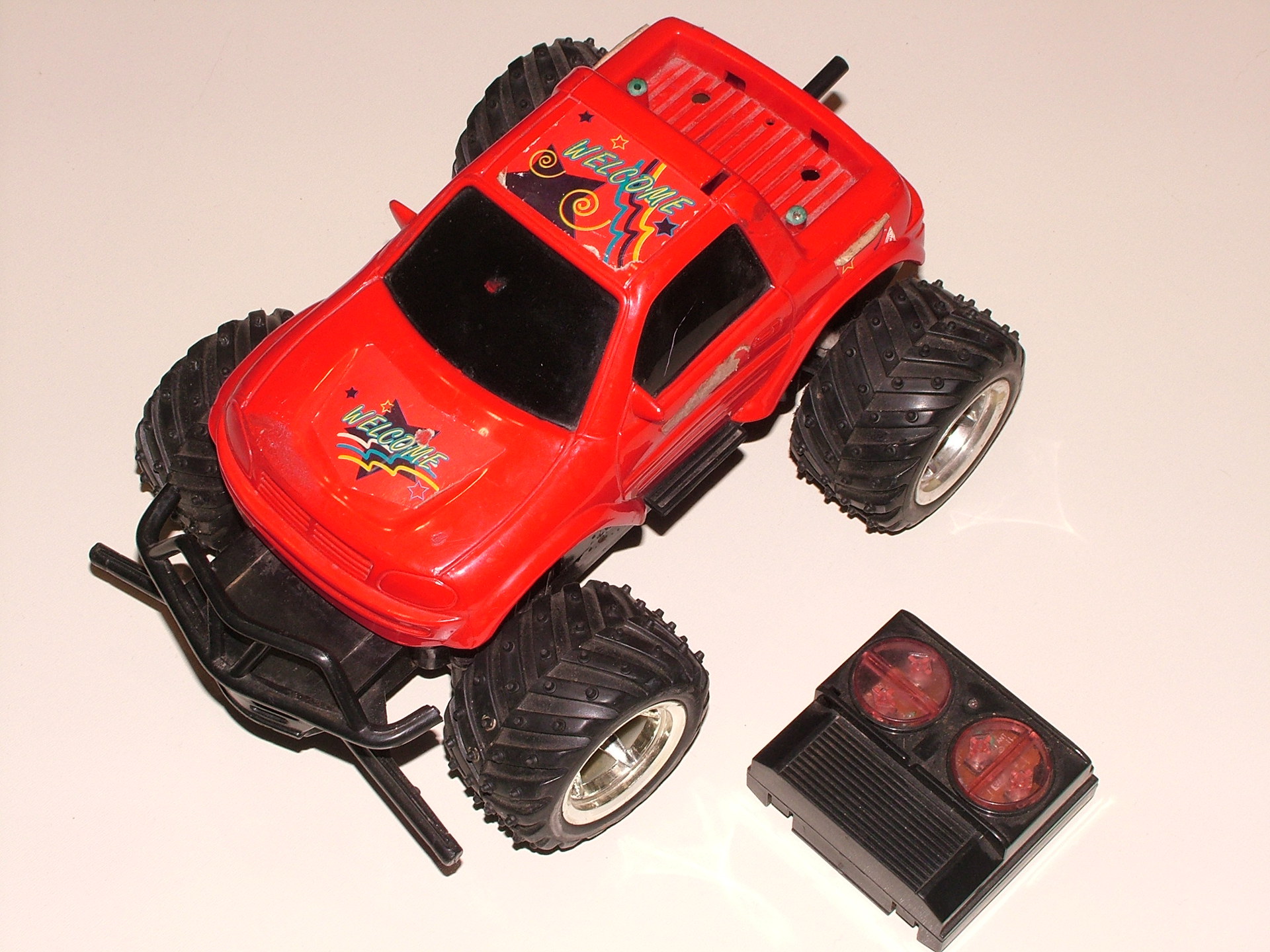 Elvihető kőbányáról elsősorban olyannak, akinél van gyerek. Adó-vevő jó, a vevő antenna és az elemtartó fedél hiányzik. El van törve a bal oldali kormány csap (utolsó kép). Elemek kellenek bele, és működőképes. Ügyes kéz rendbe tudja hozni. Személyesen, posta nincs !! Érdeklődést ide várok. Nézd meg az adatlapomat.