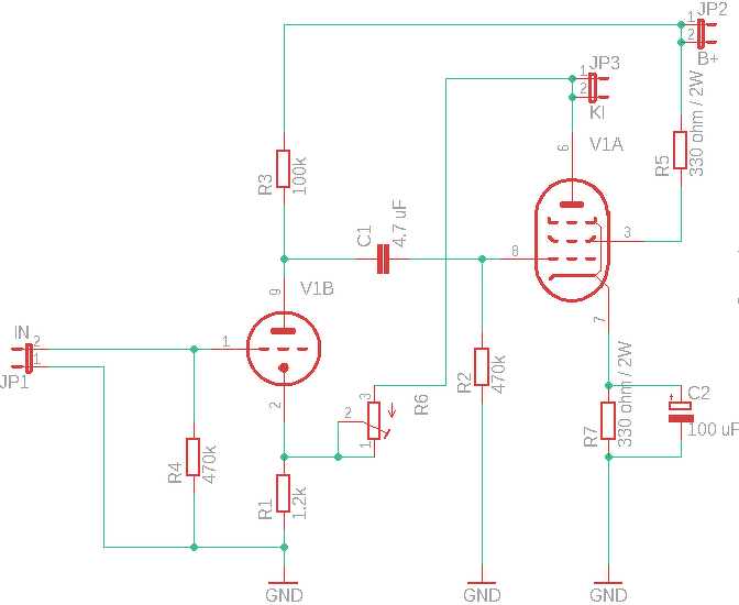 Az kicsit fentebb írt anódáram és -1V gate feszültség beállításommal egyetértesz ennél a kapcsolásnál? 260Vdc anódfesz mellé a triódához 170K - 720ohm páros menne, a gatere meg 470k a föld felé.