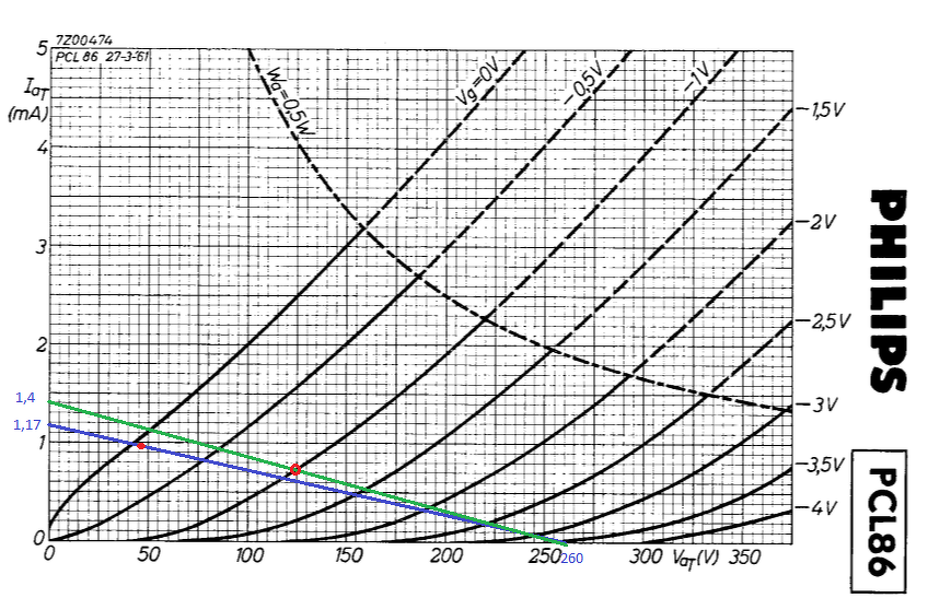 Anno a rokon 12AX7 méretezése alapján számolgattam ezeket a dolgokat, ami eléggé hasonló a pcl86 triódájához: http://www.shine7.com/audio/12ax7_pre.htm. Ezúttal bedobtam az egészet az LTSpice-ba, onnan jöttek ki a pontos számok, viszonylag kis eltéréssel. Szerintem megérne egy próbát a dolog!