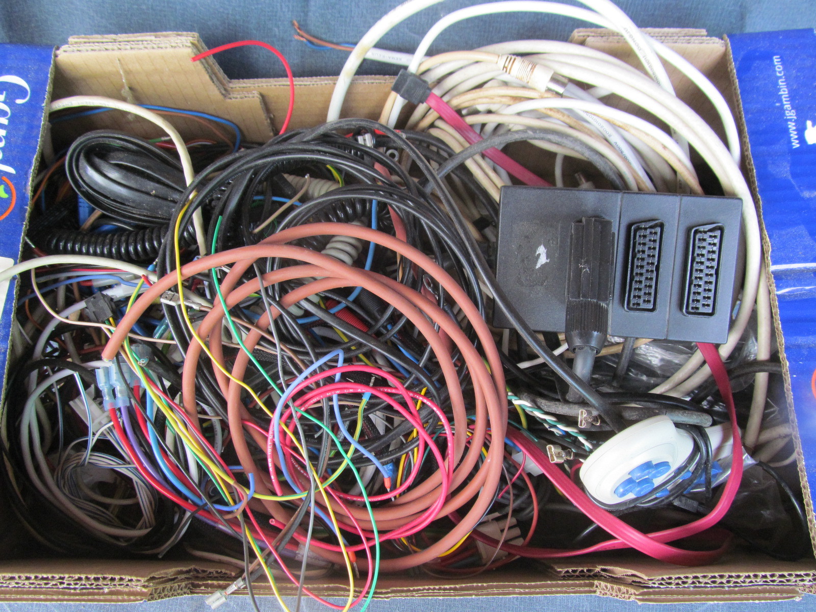 -1 doboz mindenféle vezeték, kábel, nem szemét kategória, használhatók!
