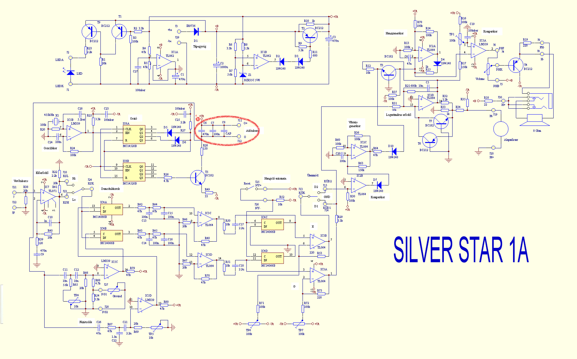 Piros körrel bekarikázot részben mély kondenzátor cseréjével tudom növelni a tekercs erősségét a silverstarban? a C8 "CAP" hoz kell bekötni? vagy a C7 100n vagy a C6 470n cseréjével?