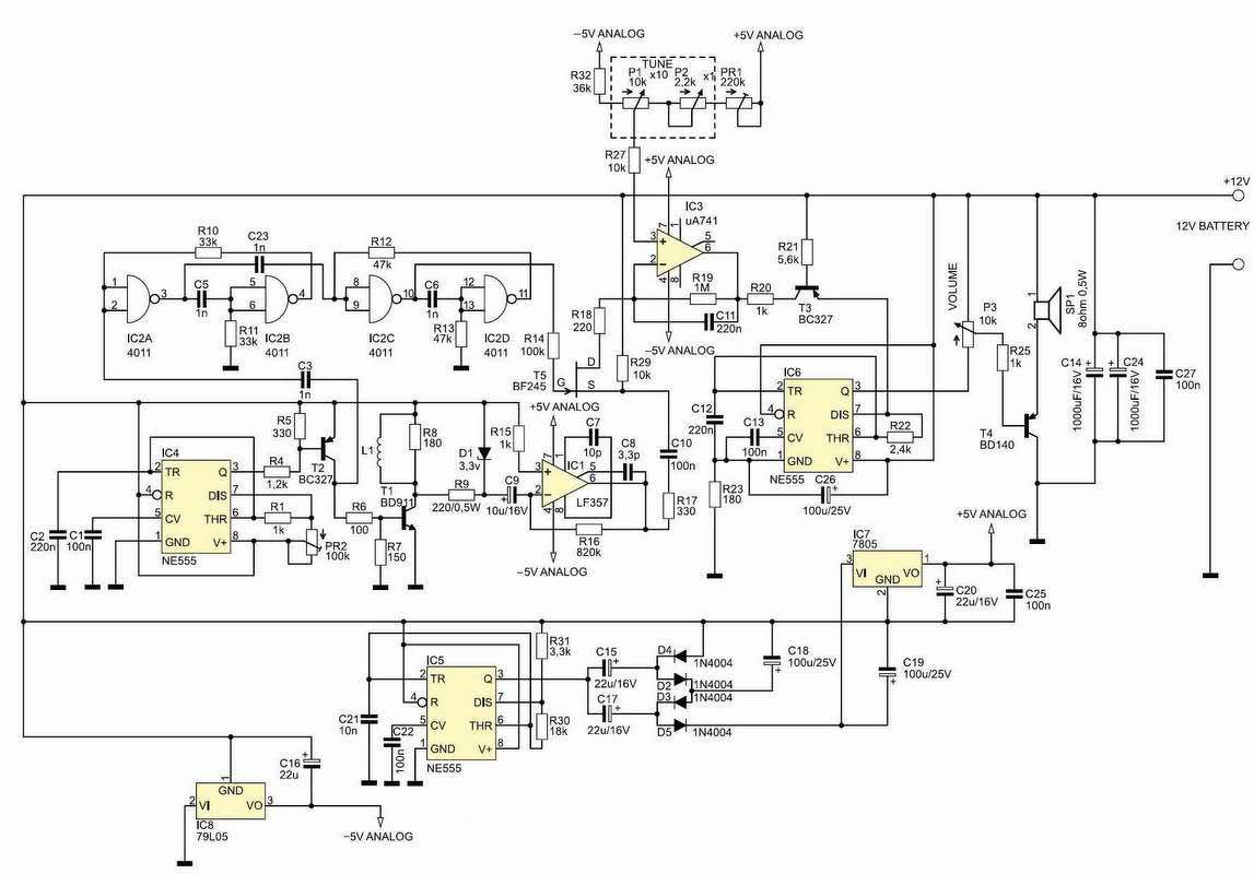 Tv szerelô vagyok, hoztak egy Sand Banks (=PI polones) házi készítésű detektort ami műkődőtt , de most semmi hang, tápja 0V. Gyorsában addig jutottam el hogy a +12V ból +17V-ot állít elő, ezt egy NE555 el éri el és 7805-el stabilizálják a hozáadott 5V-ot (GND-je eltolva +12V-ra), rossz volt az NE555. Most megvan a +17V-om, de a kimeneti tranzisztor (BD911) melegszik, és sok áramot huz, jelenleg tápegységrôl próbálom, le van korlátozva 1,5A-ra. Emeljem 5A-ra, vagy van még valahol hiba, kikapcsolaskor sipolo hangot is ad már. Tudja-e valaki mennyi áramot húznak a PI detektorokaz akumulátorból?