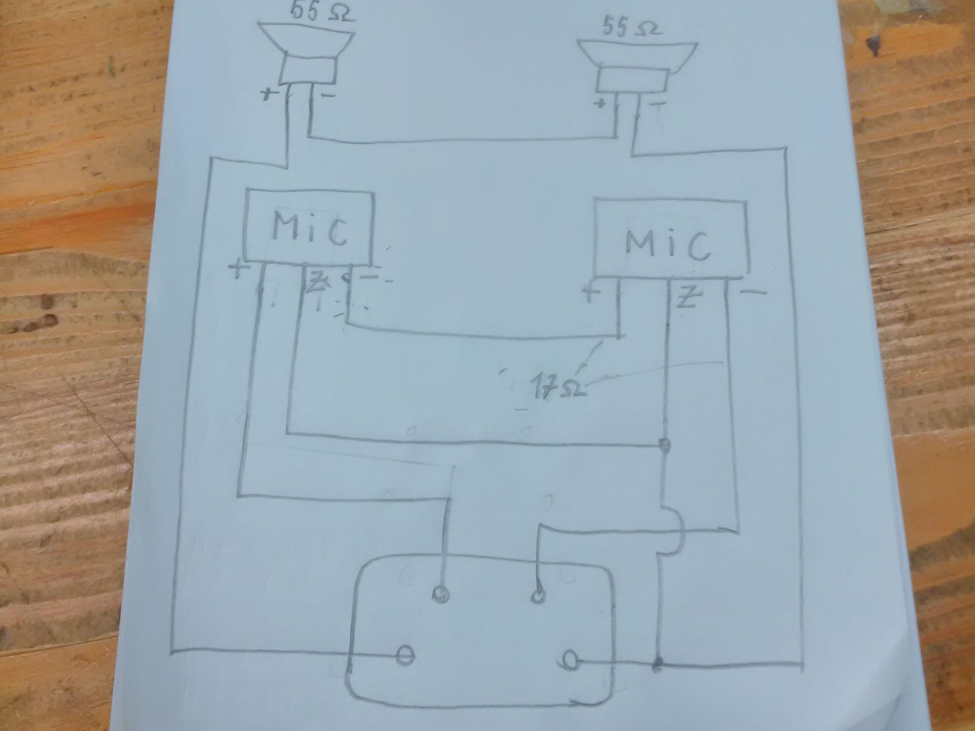 Ha csak a "csupasz" beszélő készlet van akkor azok füles szinten a szokásos katonai 50-100 ohmosak . A gége mikrofon pedig egy X menetes tekercsből álló "pickup" ellenállásmérővel mérhető valamekkora érték. Arra egy kis jelű erősítő bemenete kötendő. Talán jobb lenne ha szimmetrikus bemenetű .