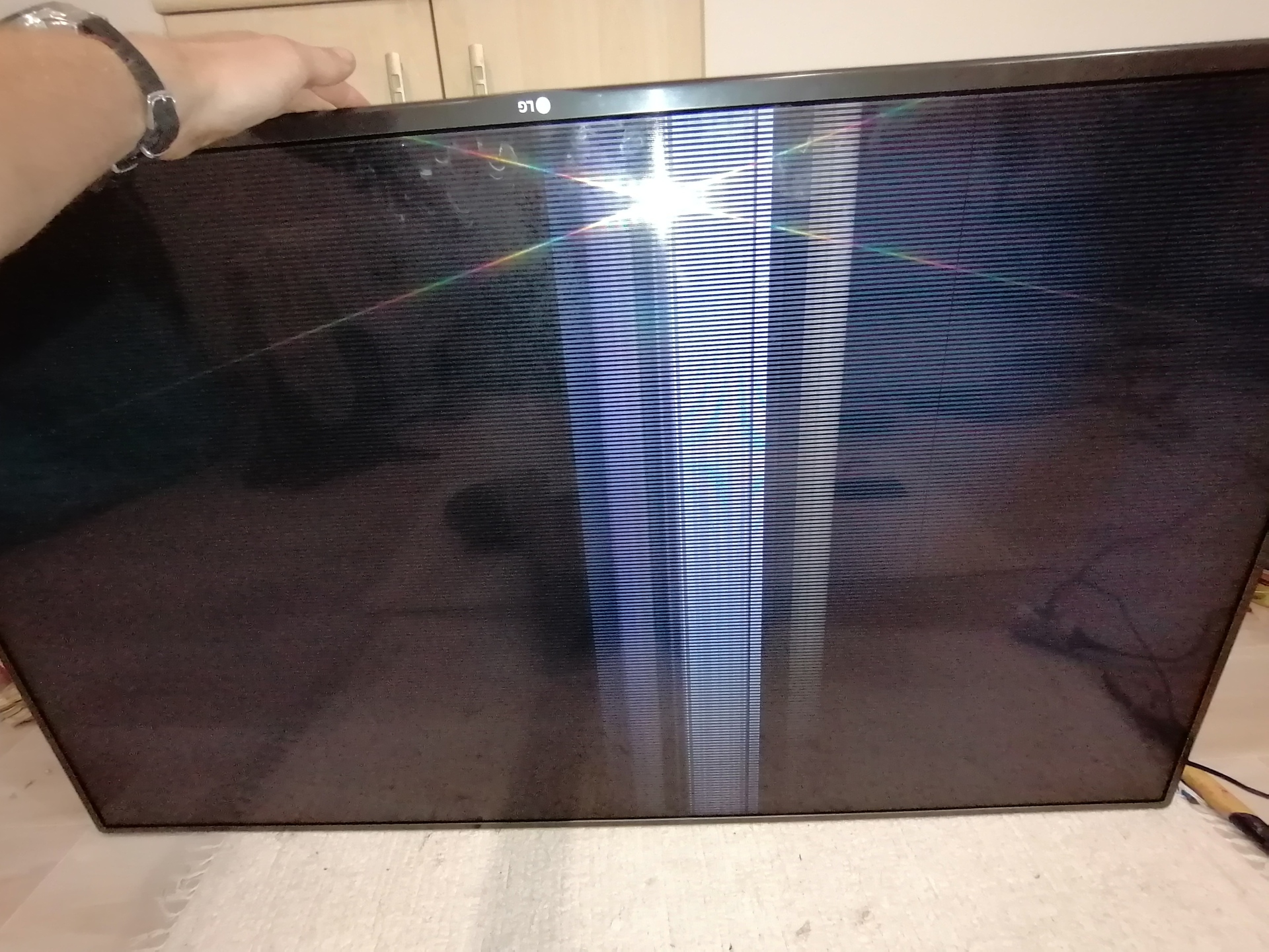 Az LG pedig biztosan kijelző hibás. Amikor óvatosan csatlakoztatod a bal oldalt, valószínű, hogy nem minden láb érintkezik, és habár úgy tűnik, jó a kép, valószínűleg kimaradnak bizonyos sorok (azok, amik zárlatosak oldalt), így megfelelőnek ítéled a képet.