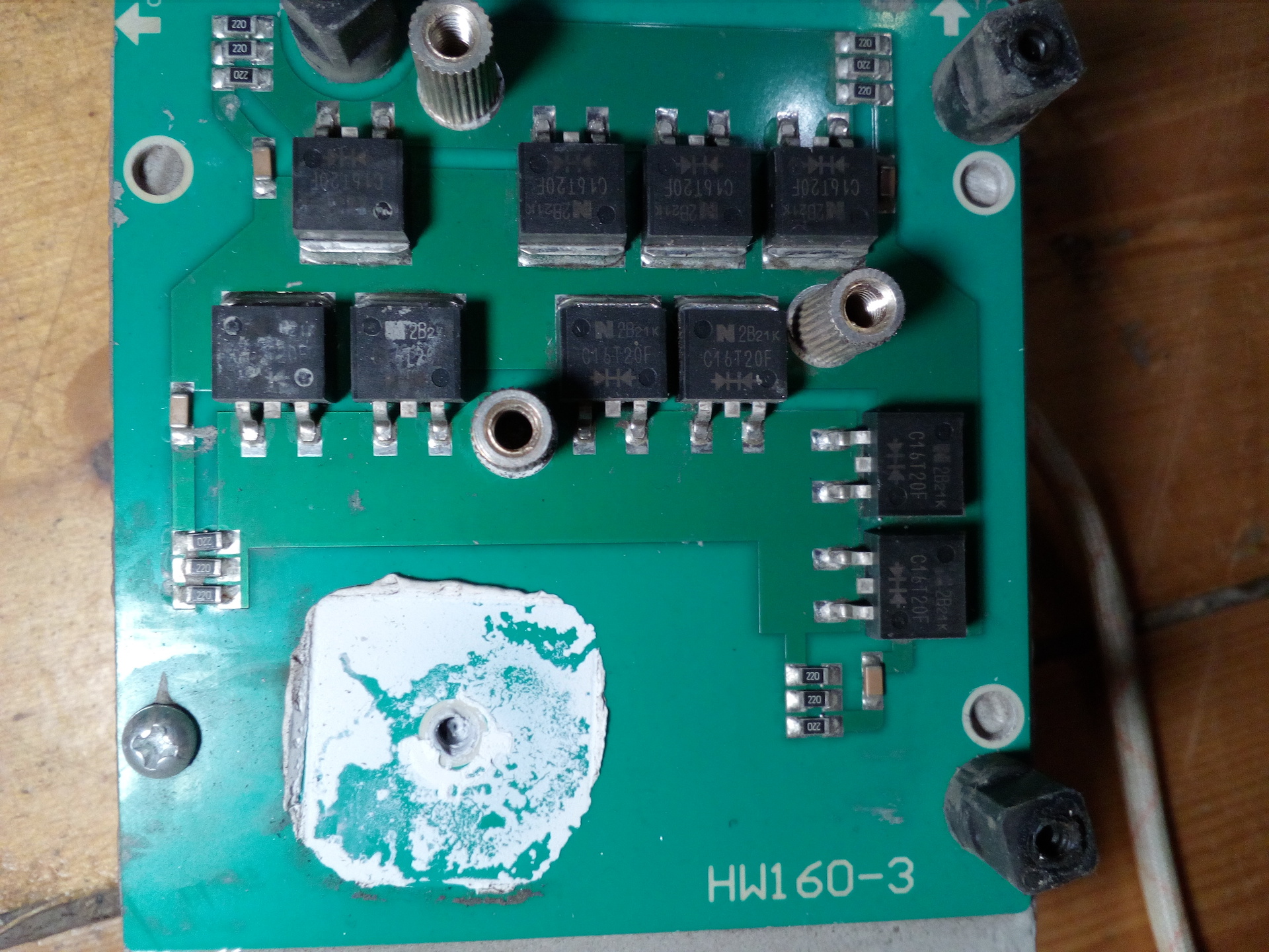 Vegyes tüzelésű kazánt kellett hegesztenem. Leengedtem a vizet belőle hegesztési szint alá, és meghegesztettem. Mivel nem vagyok profi többször feltöltöttem vízzel hogy folyik e. Igen szivárgott. Gondoltam most nem engedem le a vizet. Amint ívet akartam fogni levágta az automatát, és 2 IGBT elköszönt. Mivel van itthon kicseréltem, és tesztelésként 2-3 pálcát elhegesztettem zártszelvényen. Visszatérve a kazánból leengedtem a vizet, és sikerült meghegeszteni. Csak mozgott bennem, hogy van valami összefüggés. A vízzel feltöltött kazánra ismét rápróbáltam. Megint kiment 2 IGBT. És még egyszer kipróbáltam... ugyan az. Tehát a hiba reprodukálható. Csak azt nem tudom mi az összefüggés. Minden esetben mind 6 IGBT-t cseréltem teljesen újra.