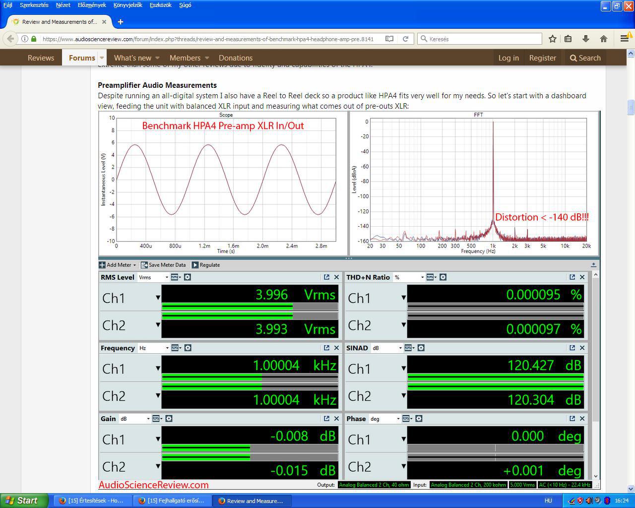 De az alacsony torzítású Benchmark tényleg nem lehet rossz. Ha meg színezni kell, akkor meg nem ez a tuti választás. Ha már színezés, akkor egy kis részlet a zenei matekból: Tehát arra akartam célozni, hogy vannak kellemes együtthangzó frekvenciák. Nagyon lecsupaszítva legyen egy "C dúr". Ez egy egyszerű akkord. Egy hármashangzat, ami három hangból áll. Van egy alaphang ez "C", vagy iskolában tanultak szerint a "dó". Van még egy "E"(mi), meg egy "G"(szó) hang is. Ezek együtt alkotják a C dúrt. Na jobban nem is megyek bele, hanem nézzük a matematikáját. A kiegyenlített skála szerint a 12 félhangból álló oktáv hangközei egymáshoz képest kettőnek a tizenkettedik gyöke távolságban vannak egymástól, tehát bármely két szomszédos félhang hányadosa ugyanannyi. Csak hogy ez nem szól szépen, ezért kissé megváltoztatták a hangok frekvenciáit, hogy azok interferenciái lehetőleg egy másik hang egész számú többszöröse legyen. A példaként említett "C dúr" első két hangjának frekvenciája 264 Hz (C), valamint 330 Hz (E). Ennek a két hangnak a különbsége 66 Hz. Ennek hatszorosa az 396 Hz, ami éppen a harmadik hang az akkordban. Ez a három hang (de a legtöbb akkord is hasonlóan) hiába szenved torzítást zenei marad, mert a keverési termékek is beleillenek a képbe. Egy szál gitár, vagy egy darab zongora hangját nem rontja el. Legfeljebb a páros vagy páratlan harmonikusok arányától függően változik a hangszín, ami többlet magas hangként jelentkezhet, annak ellenére hogy lineáris az átvitel. Még folytatom, csak el kell mennem.