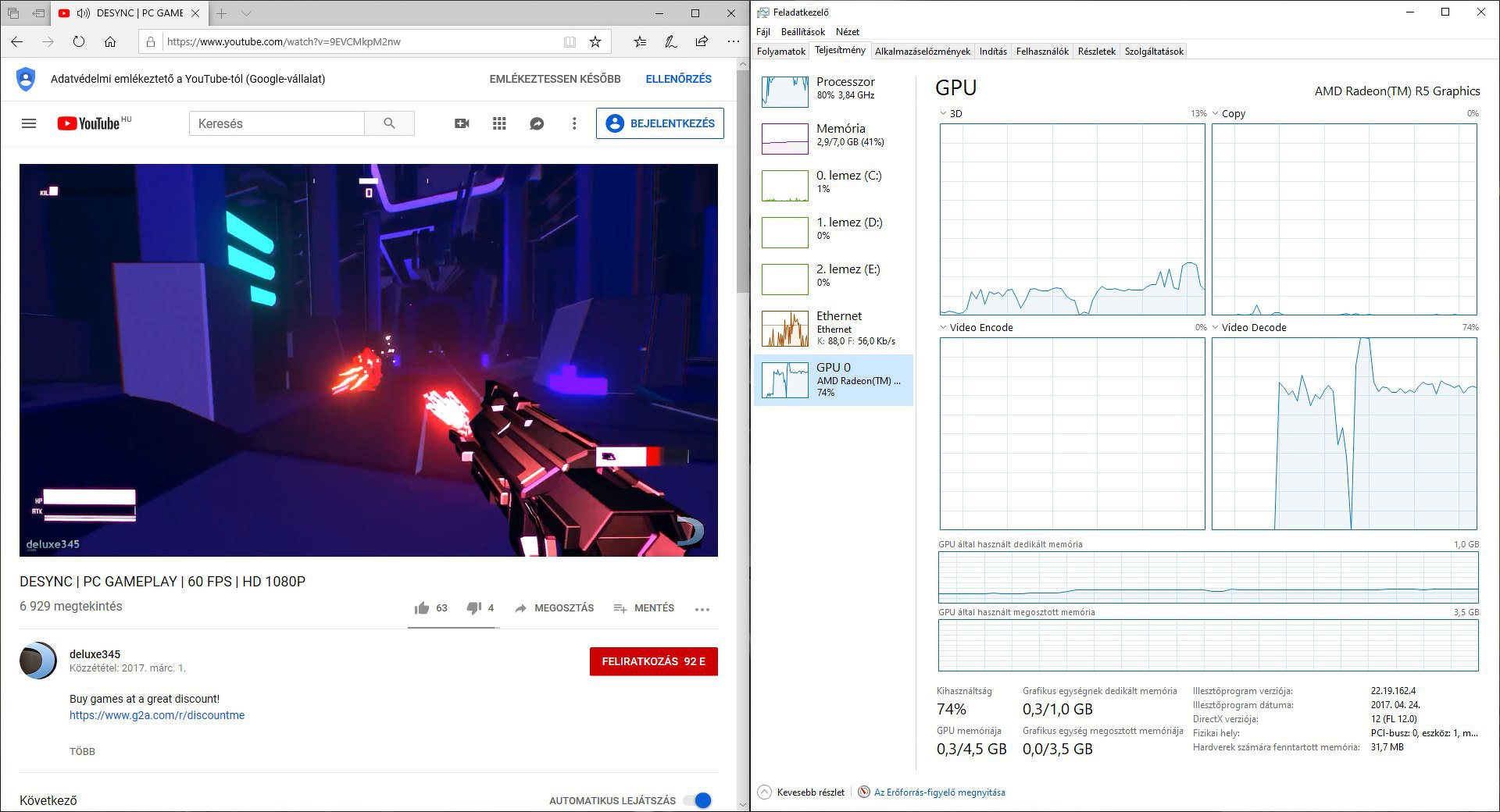Az alábbi problémával kapcsolatban kérném a segítségeteket: Firefox-nál és Chrome-nál nem működik a hardveres gyorsítás Youtube videók lejátszásánál, csak a Microsoft Edge-nél, emiatt nem tudok FullHD 60FPS-es videókat nézni Firefoxon és Chrome-on (pedig a hardveres gyorsítás mindkét böngészőn engedélyezve van). A videókártya driver újratelepítése nem oldotta meg a problémát, a directx diagnosztika szerint minden rendben. Oprendszer: Windows 10 pro 64bit jogtiszta aktivált, Radeon verzió: 19.7.1, BIOS legújabb. Konfig: Asrock FM2A68M-HD+, AMD A6-7400K, FSP Hexa 400W táp, 2x4GB DDR3 Kingston HyperX RAM 1600MHz, hibátlan WD Blue WD10EZEX-en a rendszer. A segítséget előre is köszönöm!