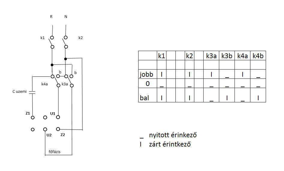 Helló!Van egy egyfázisú kondis aszinkronmotorom aminek négy kivezetése van, két fő U1-U2, és két segédtekercs Z1-Z2. Van egy Apator háromfázisú háromállású forgásirányváltó kapcsolóm, amivel szeretném a forgásirányt változtatni. Tudna valaki rajzot adni ehhez?