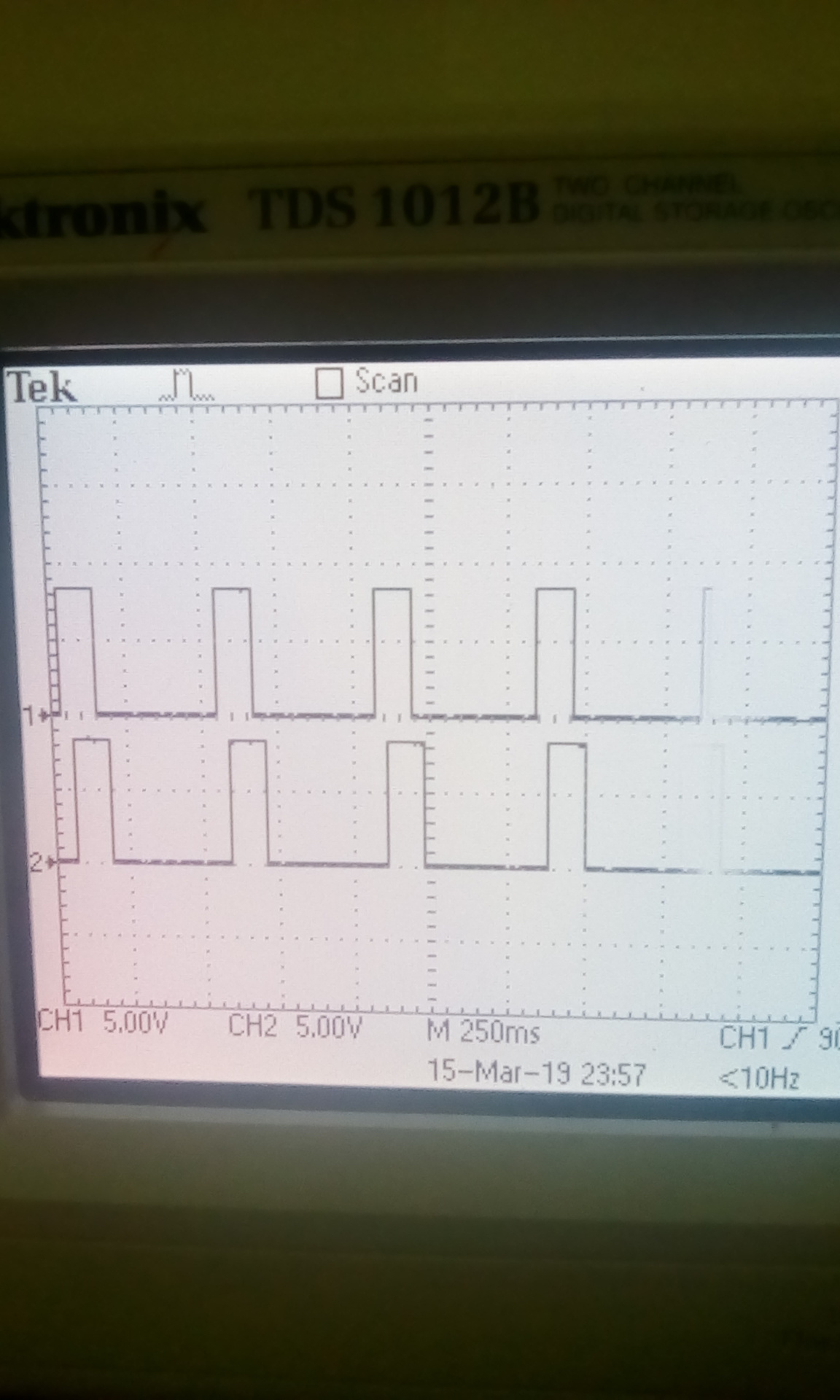 ,egy kis kiegèszìtèssel itt is szaggatott a motor egy kicsit induláskor ezèrt raktam be egy 2 voltos előfeszìtèst1. kèp . Jòl látszik a 2monostabìl működèse 2. kèp. A fordulatszám változásával jòl kivehető a kimenö feszültsèg változása az induktìv jeladò jelènek változásának arányába.