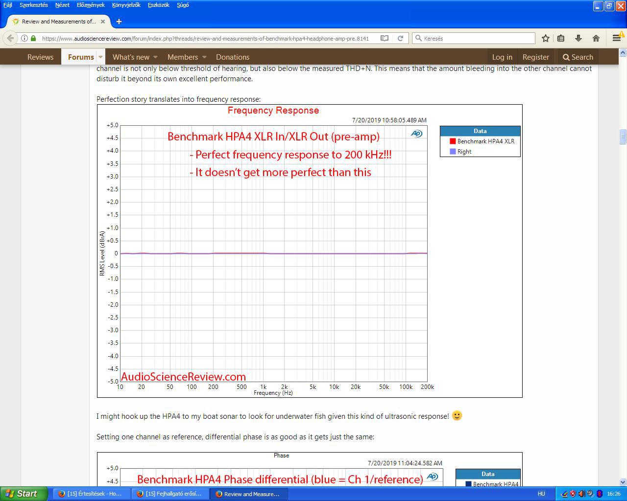 De az alacsony torzítású Benchmark tényleg nem lehet rossz. Ha meg színezni kell, akkor meg nem ez a tuti választás. Ha már színezés, akkor egy kis részlet a zenei matekból: Tehát arra akartam célozni, hogy vannak kellemes együtthangzó frekvenciák. Nagyon lecsupaszítva legyen egy "C dúr". Ez egy egyszerű akkord. Egy hármashangzat, ami három hangból áll. Van egy alaphang ez "C", vagy iskolában tanultak szerint a "dó". Van még egy "E"(mi), meg egy "G"(szó) hang is. Ezek együtt alkotják a C dúrt. Na jobban nem is megyek bele, hanem nézzük a matematikáját. A kiegyenlített skála szerint a 12 félhangból álló oktáv hangközei egymáshoz képest kettőnek a tizenkettedik gyöke távolságban vannak egymástól, tehát bármely két szomszédos félhang hányadosa ugyanannyi. Csak hogy ez nem szól szépen, ezért kissé megváltoztatták a hangok frekvenciáit, hogy azok interferenciái lehetőleg egy másik hang egész számú többszöröse legyen. A példaként említett "C dúr" első két hangjának frekvenciája 264 Hz (C), valamint 330 Hz (E). Ennek a két hangnak a különbsége 66 Hz. Ennek hatszorosa az 396 Hz, ami éppen a harmadik hang az akkordban. Ez a három hang (de a legtöbb akkord is hasonlóan) hiába szenved torzítást zenei marad, mert a keverési termékek is beleillenek a képbe. Egy szál gitár, vagy egy darab zongora hangját nem rontja el. Legfeljebb a páros vagy páratlan harmonikusok arányától függően változik a hangszín, ami többlet magas hangként jelentkezhet, annak ellenére hogy lineáris az átvitel. Még folytatom, csak el kell mennem.