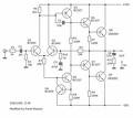 Az R4-helyett inkább 100Ohm-os heli-trimmerpotenciómétert kell beépíteni, ezzel beállítható a kis jelű keresztezési torzítás-minimuma, vagyis a nyugalmi áram állítható. Úgy legyen benn a trimmer, hogy a teljes 100Ohm mérhető legyen, és lefelé kell szabályozni. Ha nagyon sokat kell leszabályozni, akkor kicsi a tranzisztorok erősítése, nagyobb erősítésű tranzisztorok kellenek. Nagyon sokat megépítettem belőle, jóval nagyobb teljesítményekre és táppal is természetesen, jó végfok. A bemenetre jobb a 10(22)µF-os csatolókondenzátor és a visszacsatolásba is elkel a 100uF, a 47µF-helyett, ezzel igen dögös, akár szubbasszushoz való végfok is lehet belőle. Üdv!