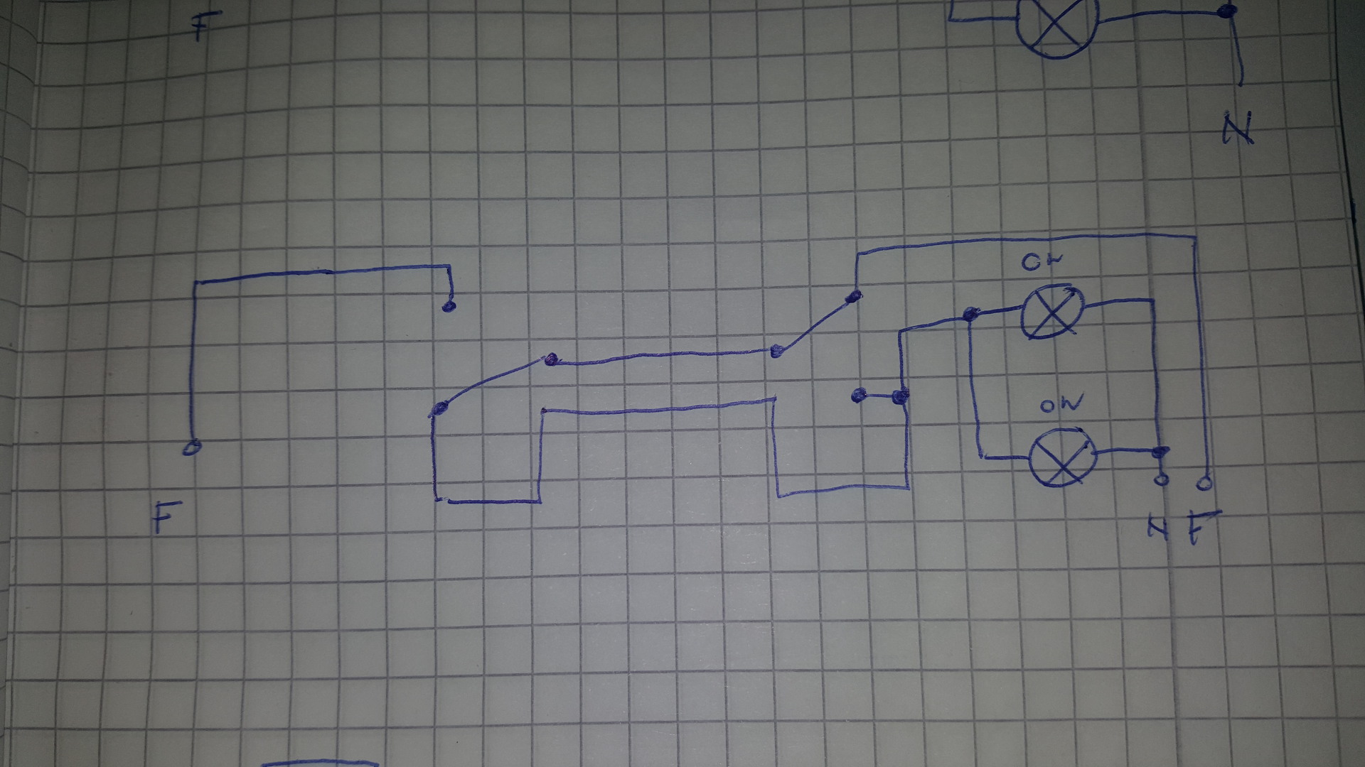 Annyiban vitatkoznék, hogy a dehogynem, azaz a másik vezeték a lámpaszál. Lerajzoltam Neked máshogyan. Középen a 2 vezeték ami a csőben adott.