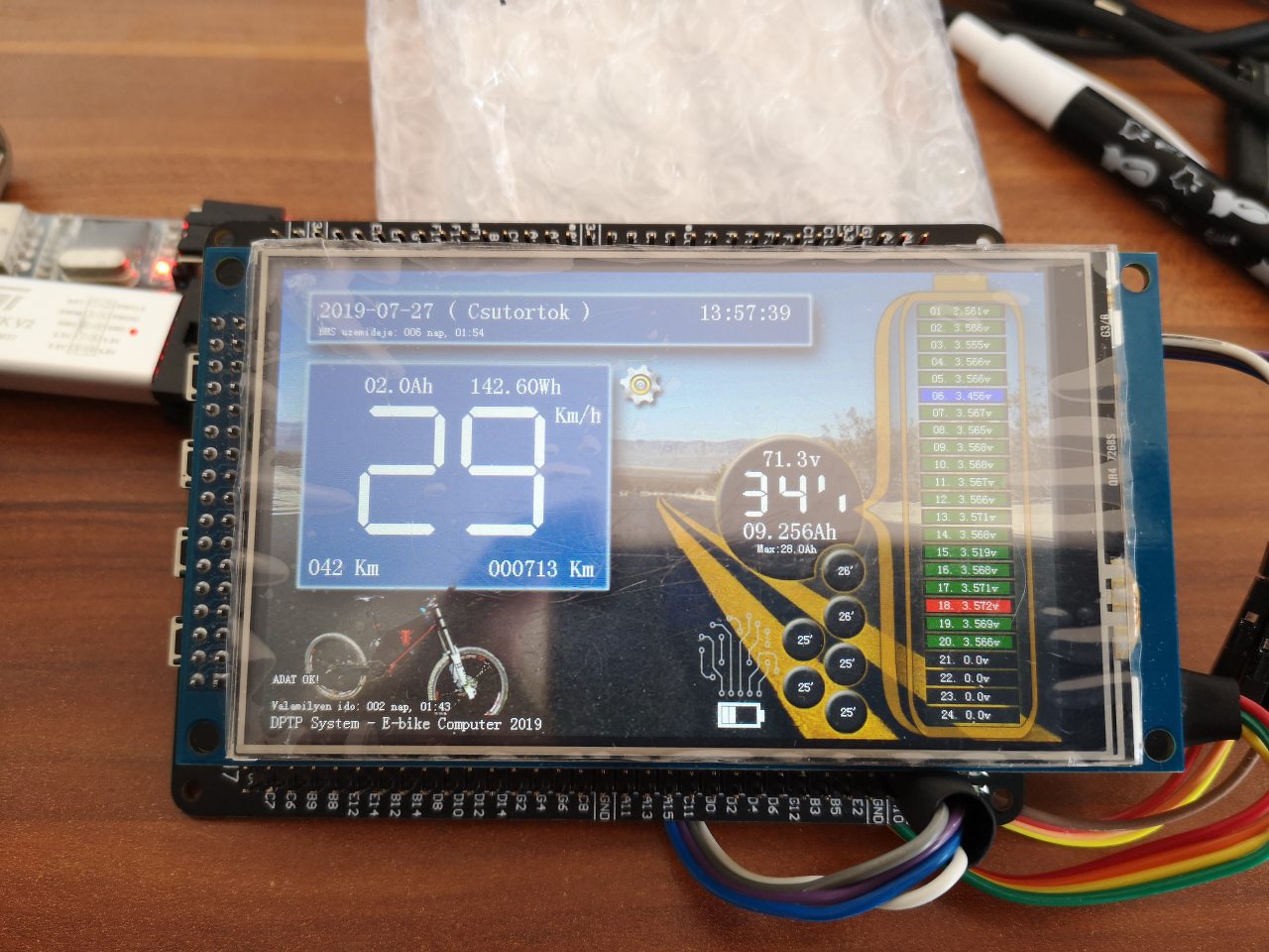 Nem rossz, de elég gagyinak tűnt és ezért gondoltam sajátot rá tenni, az csak jobb érzés nézegetni. Amúgy már azon gondolkodom, hogy marad az eredeti és alternatíva ként lesz egy külső fedélzeti, amely valamilyen módon mutatja a legfontosabb adatokat, mert szerintem talán a sebesség nem olyan font egy kerékpárnál, hiszen alig-alig tudom csak átlépni a korlátokat. Áhh most már ezer felé jár az agyam, viszont tényleg, ha csak kevésszer kell frissíteni, pl, csak 10-30mp-ként, akkor simán jó lenne egy e-paper. És az akku. állapotát minek is többször.