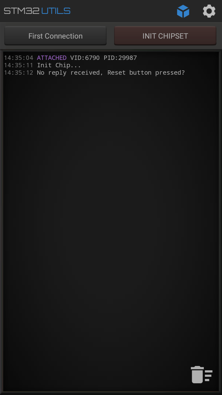 Csak tippek: baud-on próbáltál csökkenteni? 1200-115200 az intervallum. Esetleg a CubeProgrammer-el egy próba.