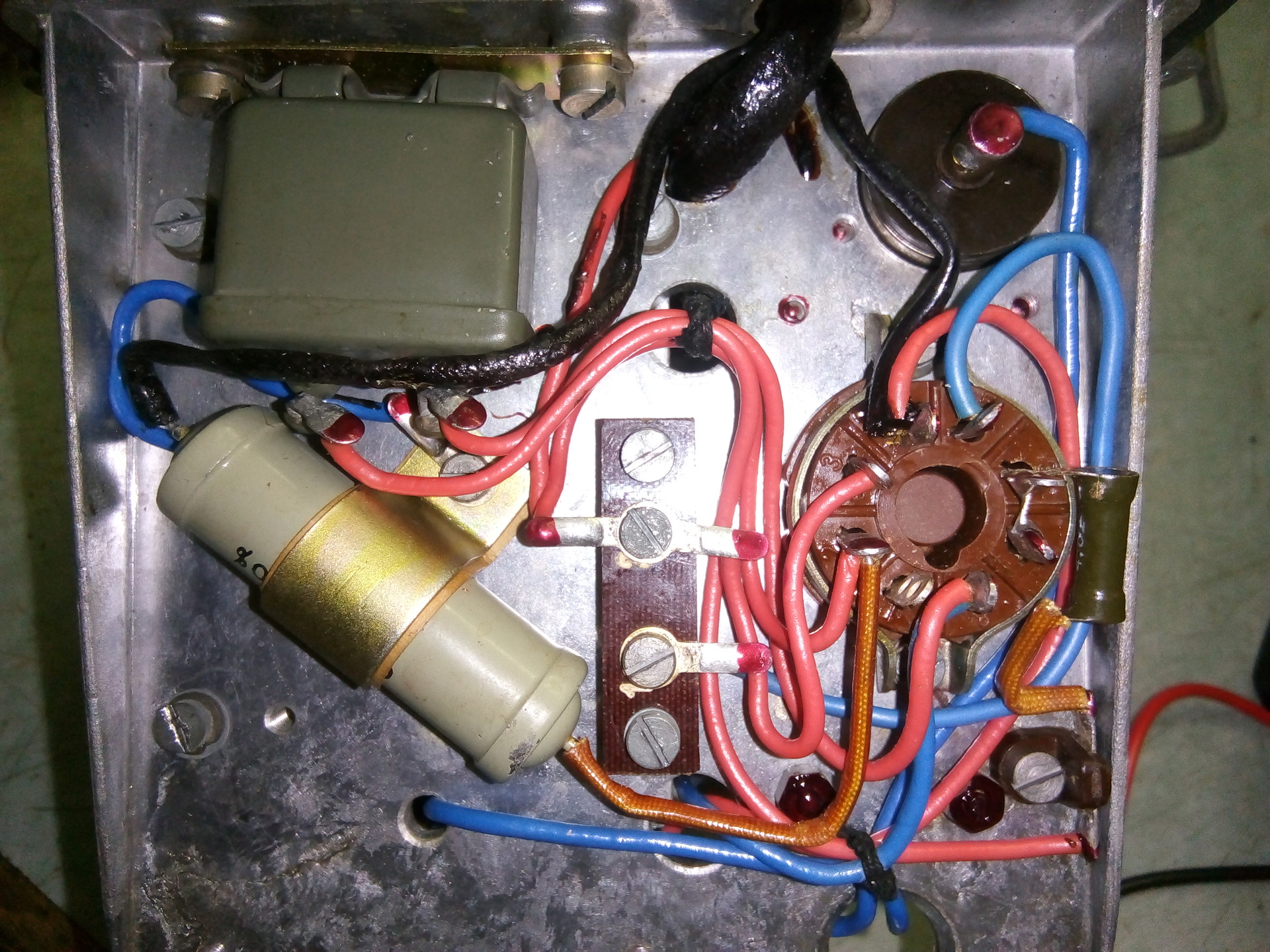 Egy régi, katonai, orosz éjjellátó nagyfesz egységét szerettem volna villanypásztornak felhasználni. Sajnos nem működik. Beleméregetve azt tapasztalom, hogy bekapcsolat állapotban a doboz oldalán is mérhető az akkufeszültség. A kapcsolóig minden rendben, utána, mintha vmelyik. alkatrész hibája miatt zárlatos lenne, s ezért nem mködik, nem jelez vissza a kontroll lámpája sem. Szinte minden fémes pontján mérni tudom az akku pozitív feszültségét. A tekercs szakadhatott meg, vagy vmelyik alaktrész miatt adódik a probléma? Én a szürke, hengeres 8 kivezetésű alkatrészre gyanakszom (elektroncső?). Elsősorban az érdekelne, miféle alkatrészek ezek, esetleg miként helyettesíthetőek manapság? A helyes bkötés szerint egy szivargyújtószerű 12V akkumulátor egyenáramú betáptól indulunk, majd következik az utolsó képen látható fekete doboz, és a zöld egység. A zöld egység kapcsolójáig minden rendben, bent viszont valami nem OK. Előre is köszönöm a válaszokat!