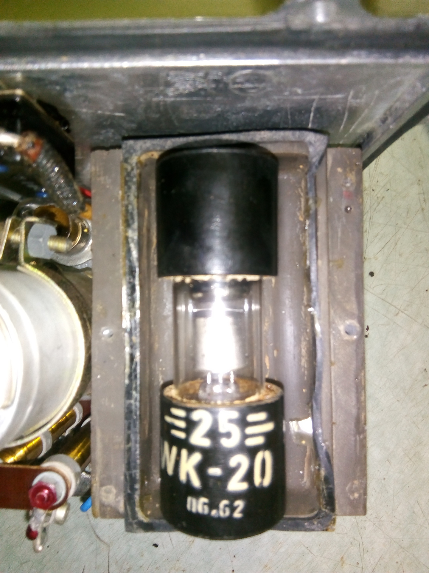 Hello! Nem ismerem ezt a készüléket, de gyanítom, hogy a szürke 8 kiveztéses, ne egy elektroncső, hanem egy vibrátor. Ami előállítja az aksi feszültségéből a váltóáramot és mellesleg egyenirányít is. Ha jól emlékszem az R105-nél is ilyen volt, amit kiváltottak ASZ1018 tranyókra. Hullottak is rendesen. Szóval ez egy mechanikus alkatrész, amit legfeljebb megjavítani tudsz, ha szétszedhető.