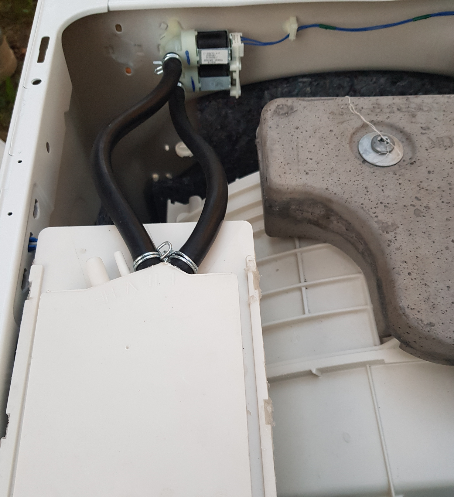 Hello! Én ugyan nem ismerem ezt a gépet, de nagyon hajaz a régi Energomat felépítésére a vizes rész. Ott is két szelep van és három vízirány. A fúvókák sugara keresztezi egymást. Ha egyik vagy másik van nyitva, egy irányba folyik (vagy inkább spriccel) a víz. Ha mind két szelep van nyitva, összeütközik a két sugár, és középen távozik a víz (java). Ha elvízkövesedik a fúvóka, felborul az egész menet, és "miden hova" megy a víz. De a két szelepet kipróbálhatod, ha lehúzod a csövet és más csövet húzol rá, ami a szabadba (vagy egy vödörbe) megy.