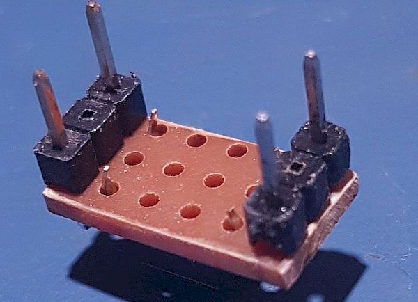 Három-három tüskesort forrasztottál egymással szembe. Csak így egy-egy tüskét biztosan kihúztál a közepéből, ugye? Így szilárdabb, mint ha csak négy tüskét forrasztanál egyenként a négy lyukba?
