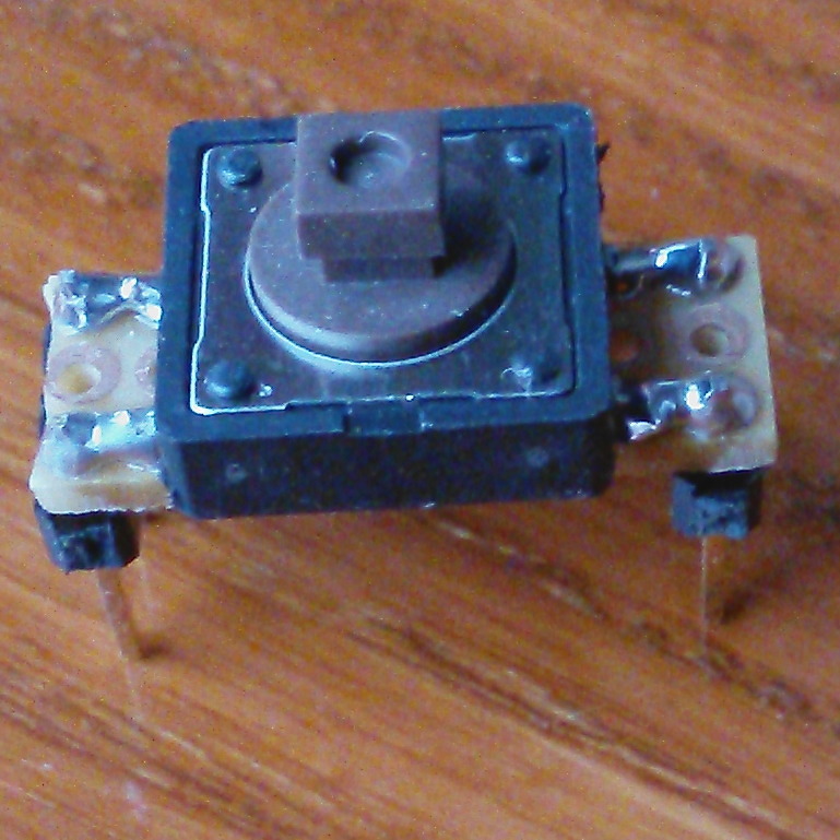 A többiek azt taglalták, hogy felület szerelten készítsd el. Így nem "csikarja" az asztalt a 4 láb. Ráforrasztod a gombokat a 4 kis réz-szigetre, ennyi... Én egy 3cmx1,5cm nyákra tenném a gombokat.