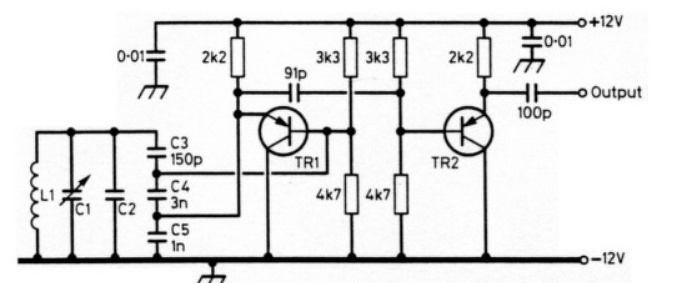mi a véleményetek az alábbi oszcillátorról? Nagyon stabilnak kellene lenni a neve is :syntethic rock ami már neve alapján is stabilnak tűnik. Kicsit előre dolgoztam, felét meg is csináltam és ki is próbáltam. Ott ahol a 91 pf -os kondenzátor a buffer tr2 fokozathoz átküldi az első fokozat végtermékét, addig építettem meg. tr2 és tartozékai nincsenek készen. Tud oszcillálni, de az amplitúdó 1v peak to peak maximum, néha még kevesebb. A frekvencia tényleg aránylag stabil, de kevés frekvenciát tudtam létrehozni, 4,5 MHz környéke, mert az oszcilláció más esetekben nem jön létre. Esetleg az lehet a gond, hogy c1+c2 kisebb, mint a c3 így a rezgőkörből az túl sok energiát von el?