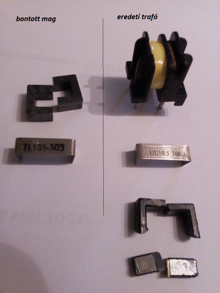 Lefényképeztem a trafót, az eredeti magot és amit bontottam. Ezeknél is számít az AL érték? ( lehet hülye kérdés) Az eredeti áttétele a nyákon 200:1, a trafón 300:1 . Ezt nem tudja bármilyen maggal? Itt nincs légrés.