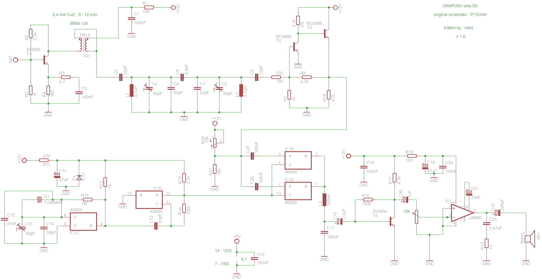 Antenna után egy sávszűrő és 1 előerősítö tranzisztor fokozat nem árt ... de először el is hagyható ... ha kicsit süket érdemes belerakni.