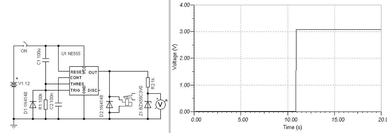 De ezek szerint van egy 12V-os jel, és szükség van egy 10 másodperccel később jövő szintén 12V-os jelre. Vagy is a 12V megjelenését szeretnéd késleltetni?