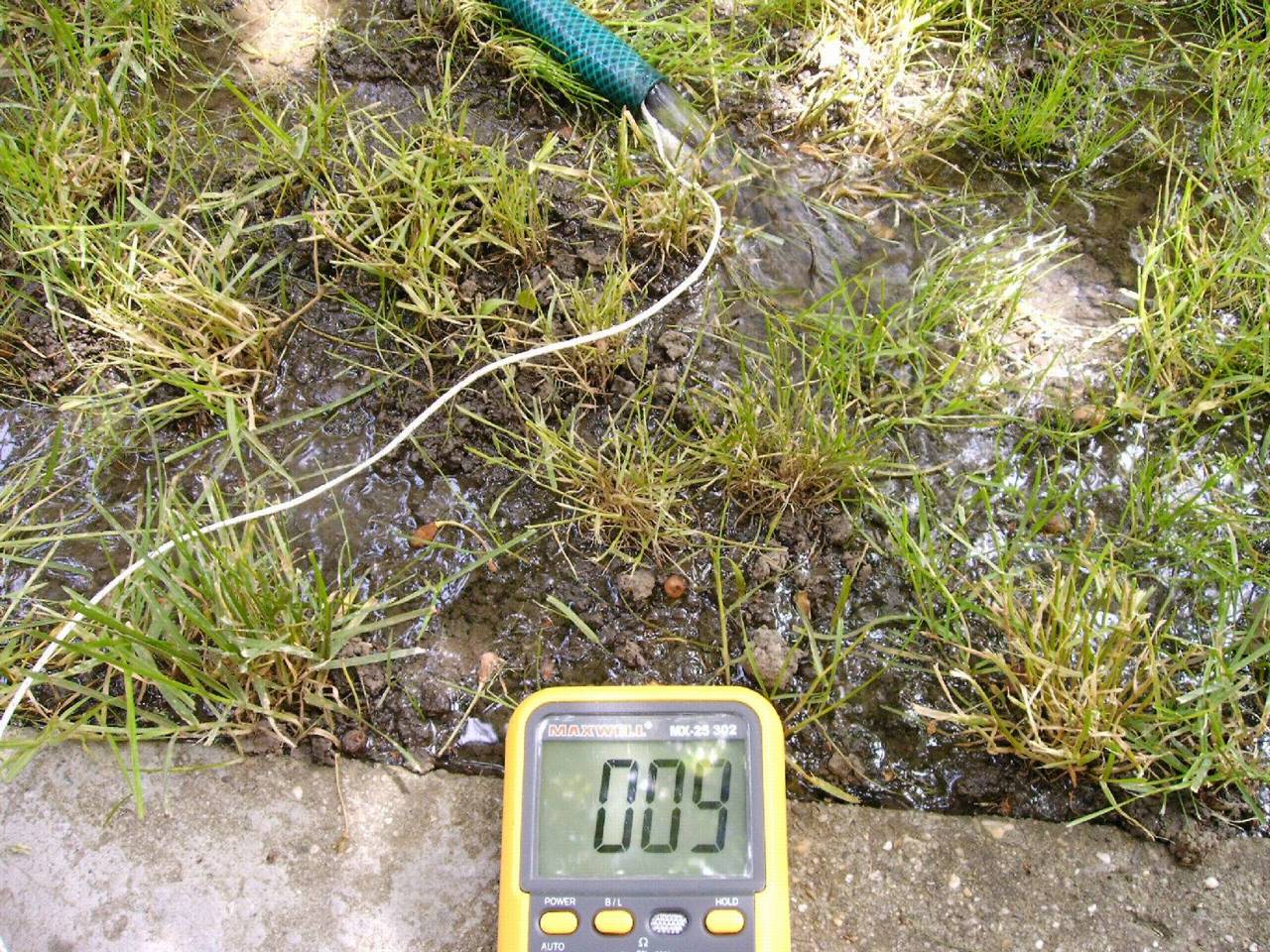 Első képen a müködő hőcserélő, a multiméteren a kifújt levegő ami 8 fokos volt, mellette a kis hőmérőn a levegő hőfoka árnyékban 34.8 fok. A második kép az a höcserélő után mért vízhőfok a kifolyó oldalon, ami 9 fok volt. Mivel most nem keringett a víz hanem fogyott ki a kútból, és jött helyette friss víz, így még hidegebb lett, mert a szivattyúzás megkezdése elött 12 fokos volt a víz, és most hogy ment 2x2 órát 2 nap, és cserélődik a víz így már 8 fokos víz jön fel! Ez már több mint tuti a kútklímához! Vagyis a lényeg, hogy a hőcserélő után ahogy kimegy a cső a falon és indul vissza a kútba, teszek bele egy T elágazót egy csappal és lehet öntözni is, így gond nélkül tudom cserélni a vizet! Na majd a megépítés során kiderül!