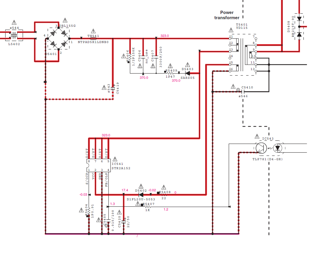 Bár nem konkrétan PC táp, de a működési elvben nem igazán különbözik, így bátorkodom ideírni. (Amúgy Yamaha network receiver digitális részének 5V-os tápegysége.) Az alap hiba, hogy nem lehet bekapcsolni az erősítőt, ugyanis nem kap tápfeszültséget a vezérlő logika. Hosszabb áramtalanítást követően (gondolom, amint már kisül a 320 V-ra feltöltött elkó) konnektorba dugáskor kb. fél mp-re felvillan a Standy LED, de ennyi az össz. életjel. Szervizkönyv van, rajz alapján odáig jutottam, hogy az IC541 tápfeszültsége a feltüntetett 17,4 helyett csak kb. 9,3 V (a 323 V az 327 nálam, ez nyilván hálózati állapottól is függ). Az FB/OLP lábon nem mérhető feszültség, felpuffadt/kifolyt elkót nem látok a panelen. Szkópom sajnos nincs itthon, szóval teljeskörű mérést nem igazán tudok végezni róla. A mértek alapján IC / kondi csere esélyes, vagy ne vágjak bele pontosabb vizsgálat nélkül? A hozzászólás módosítva: Jún 7, 2019