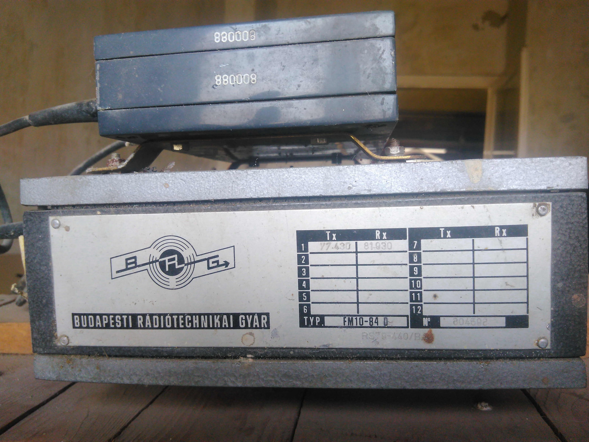 Az antenna nem penetrátor, hanem egy -gondolom- 80 MHz -es antenna, mert a rádió is egy FM10-80 -as BRG duplex rádió (a tetején a duplex szűrő) a hozzá tartozó 24 V -os tápegységgel, és kezelővel. A kezelő a duplex rádió szelektív hívós kezelésére, és a vezetékes telefonhálózattal való összekötésére szolgált. (diszpécser állomás)