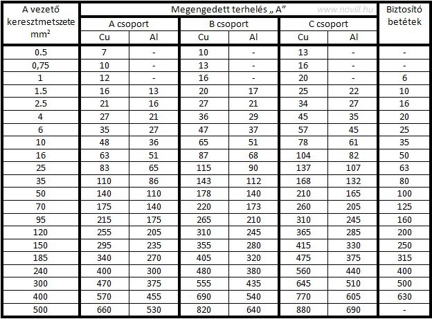És ez teljesen rendjén van, ki is számoltuk villamos energetikán. Én magam is szenvedtem már 2,5-ös vezeték aljzatba bekötésével, hatalmas kínlódás. Elfeledkeznek az emberek a terhelhetőségi táblázatról. Feszültségesésre méretezünk, terhelhetőségre ellenőrzünk, ez a méretezés folyamata. Levezettem a számítást A csoport (védőcsőbe húzott vezető) és 2% megengedett feszültségesés esetére (háztartási készülékekhez amúgy 3% is megengedett lenne, túl van biztosítva). A táblázatból kiolvasva A csoport réz esetén max 16A. Ezek alapján 12,4m távolságra az elosztószekrénytől elég a másfeles vezeték.. Ennél nagyobb távolság esetén indokolt a 2,5-ös. A táblázat utolsó oszlopa csak egy ajánlás azoknak, akik lusták számolni. Az előbbiek a mérvadóak.