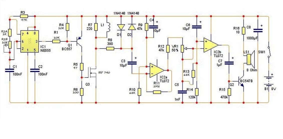 helló, nekem van 2-3 papirom ami alapján az enyém is készült nagyon kevésfogyasztású normális müködésü fémkeresőm amit egy hozzáértő szakember az alapján készitett el.