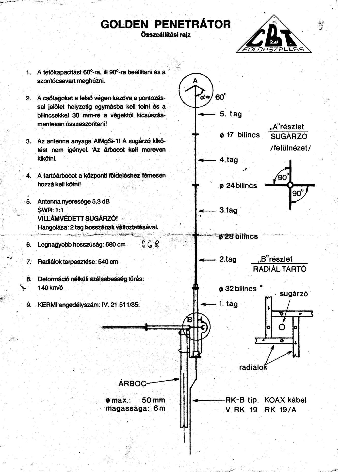 Az antenna nem penetrátor, hanem egy -gondolom- 80 MHz -es antenna, mert a rádió is egy FM10-80 -as BRG duplex rádió (a tetején a duplex szűrő) a hozzá tartozó 24 V -os tápegységgel, és kezelővel. A kezelő a duplex rádió szelektív hívós kezelésére, és a vezetékes telefonhálózattal való összekötésére szolgált. (diszpécser állomás)