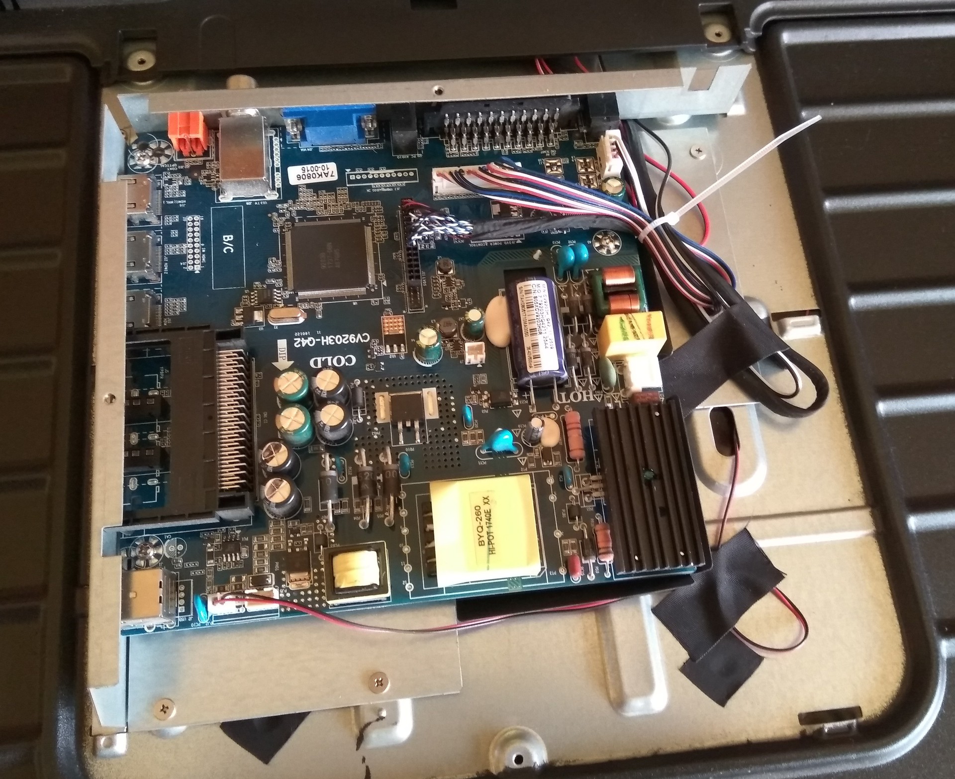 Van egy kb másfél éves Vortex LCD tv, ami pár hónapig nem volt használva és most nincs képe. Kivettem a panelt (CV9203H-Q42) és átnéztem, de nem találtam szemmel látható hibát. A háttérvilágítás működik, rá is mértem: 38 V. Arra gondoltam, valamelyik elkó esetleg kiszáradt vagy felpúposodott, de semmi ilyesmi. Hol keressem a hibát, processzor hiba lehet?