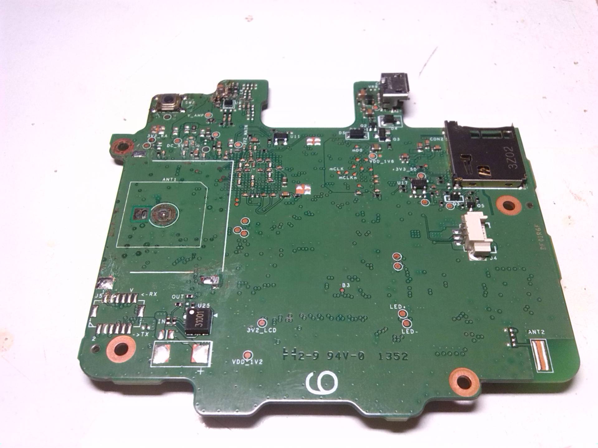 Kaptam egy Tomtom 4EN52 Z1230 GPS-t javításra. Tulajdonos elmondása szerint működőképesen el lett rakva szekrénybe pár 2 évig, majd újra elővétel után nem kapcsol be, töltést nem fogad, számítógép nem ismeri fel. Szétszedve mindjárt meglett a probléma forrása a Li-ion akku szétfolyt benne és a folyadék elkezdett dolgozni az alaplapon. Az első két képen bejelöltem ahol látható károkat okozott az akkufolyadék. A készülék bekapcsoló gombjának lábai, lent ellenállás, meg a chip antenna lemeze rozsdásodott be. Az alkatrészeket javítottam újraforrasztással (a kapcsolót szerintem cserélni kellene mert benne is jó oxidos lehet), a lemezt fényesre csiszoltam. A chip antennát nem forrasztottam még vissza így próbáltam bekapcsolni de semmi, csak a 6. képen jelölt alkatrész melegszik. Hol keressem még a hibát, esetleg lehet hogy akku nélkül be sem kapcsol?