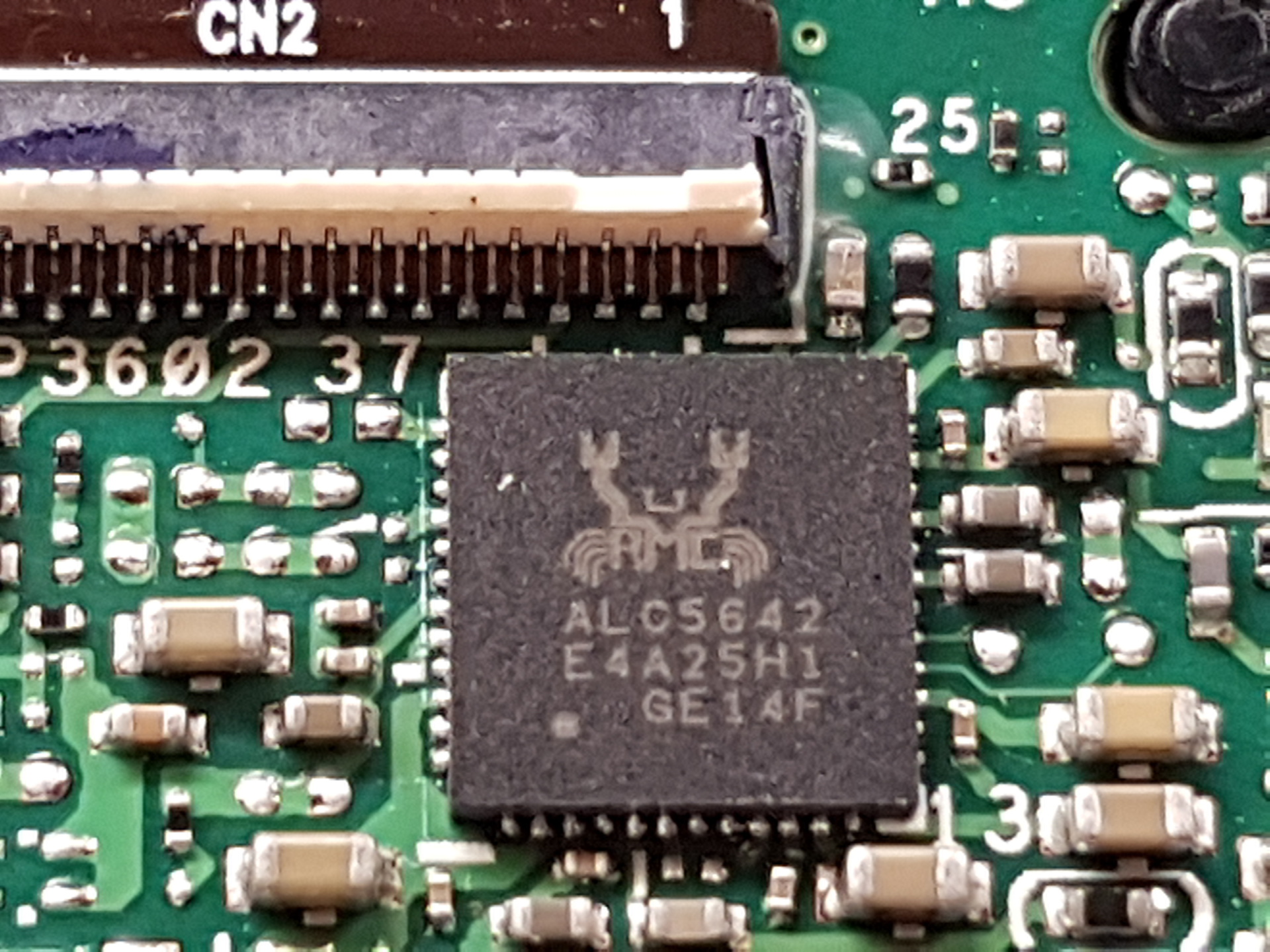 Az az igazság az hogy kéne ehhez egy kapcsolási rajz. Gyanús nekem hogy a tok bal oldalán ( lásd kép) hiányzik jó pár komponens és nem úgy néz ki mint ami sose volt beültetve. A kép pedig még az én tok cserém előtt készült. Így nem ültenek be gyárilag ahogy ez kinéz, ebbe már valaki belekotort előttem. A tulaj szerint persze senki és a gépet újonnan vették. Az ALC5642 datasheetjében van ugyan egy általános felhasználási példa rajza, de persze közel nem biztos hogy ebben a hardverkörnyezetben ez nem tér el a példakapcsolástól. Honnét lehetne kapcsolási rajzot kajtatni? Lehet fizetős oldal is csak ne valami kamu lehúzós oldal legyen... Így ez a javítás kb. vaktában lékhorgászat.