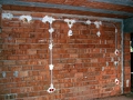Képen a nagykönyvben megírt módon, hogyan kell kialakítani a nyomvonalakat. Talán így érthetőbb, miért lehet utólag megtalálni egy jól megszerelt épületben, vakolás után is a csöveket, vezetékeket. Igaz én már inkább a csillagpontos kialakítást favorizálom, de annak is megvannak a maga előnyei. Ott inkább padlóban futnak a csövek.