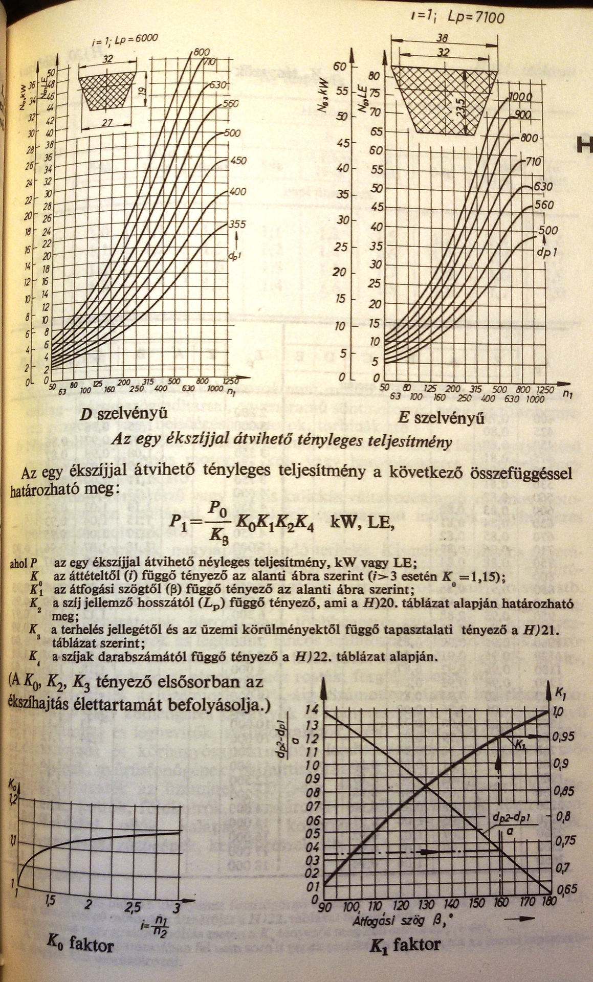 Akkor itt lesz a szíjhajtásról szóló fontosabb részletekről a leírás. A lényeg majd az lesz benne, hogy a behajtással átvihető teljesítmény az adott szíjjal és adott szabványos tárcsa átmérővel a tárcsa 180 fokos felületére való felfekvés esetén értendő.