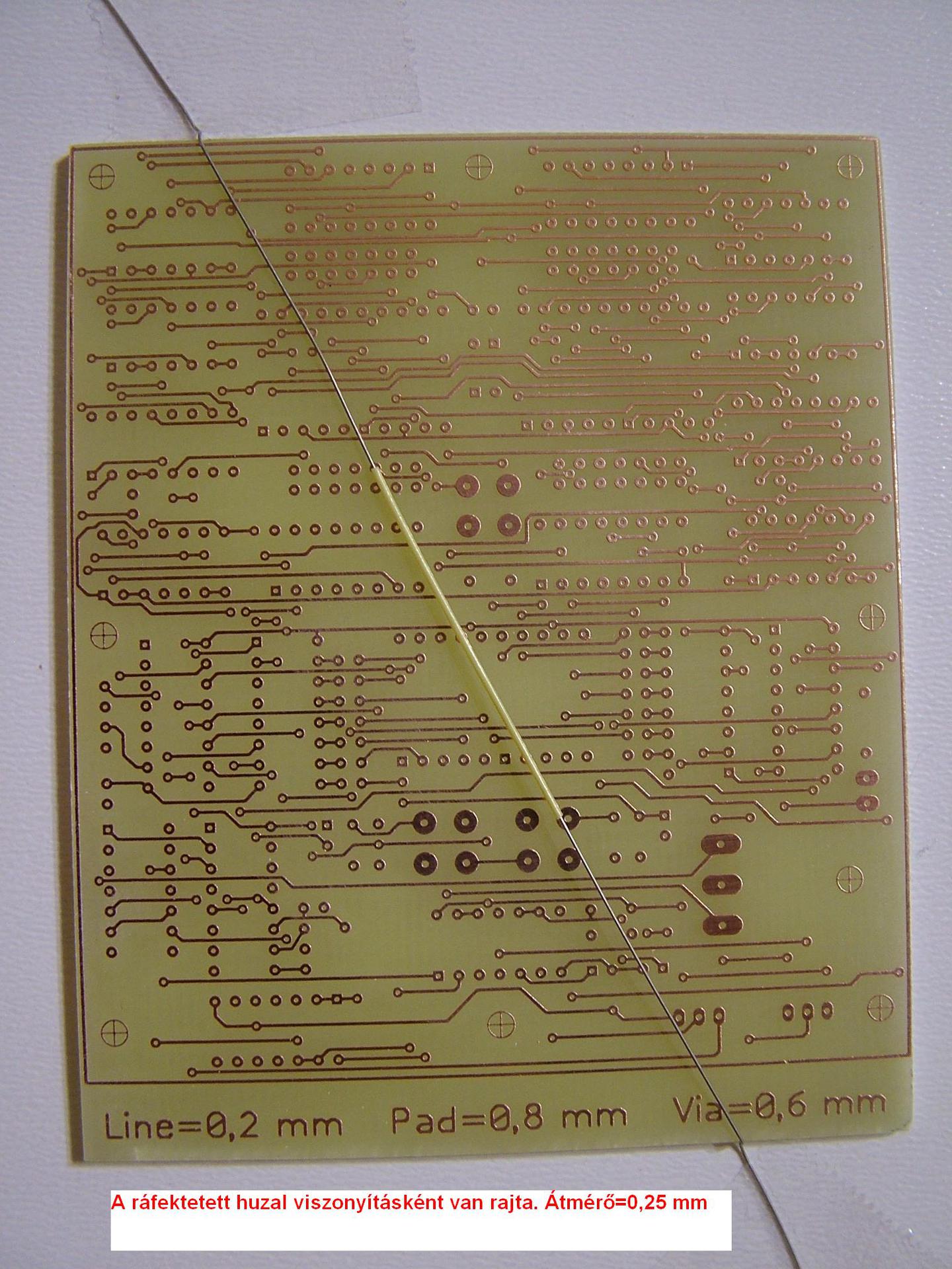 Egykori hozzászólásomra válaszolva mutatnám meg képekben az általam használt "technológiát". A részleteket anno már leírtam. - A maszkon látható, hogy lényegében átlátható, de fedett. A lötstop réteghez is így készítem a filmet.- A panelen látható min-max értékek: a kontúrt jelölő vonalak 0,15mm szélesek. A legkisebb szigetelő távolság a 0805 méretű SMD alatt átmenő 0,5-ös vonal, ami itt 0,23mm távolságot ad. A 0,2mm-es távolság gond nélkül megy, ez alatti értékre nem igazán emlékszem, mert ha használtam is, azt már nagyon régen...