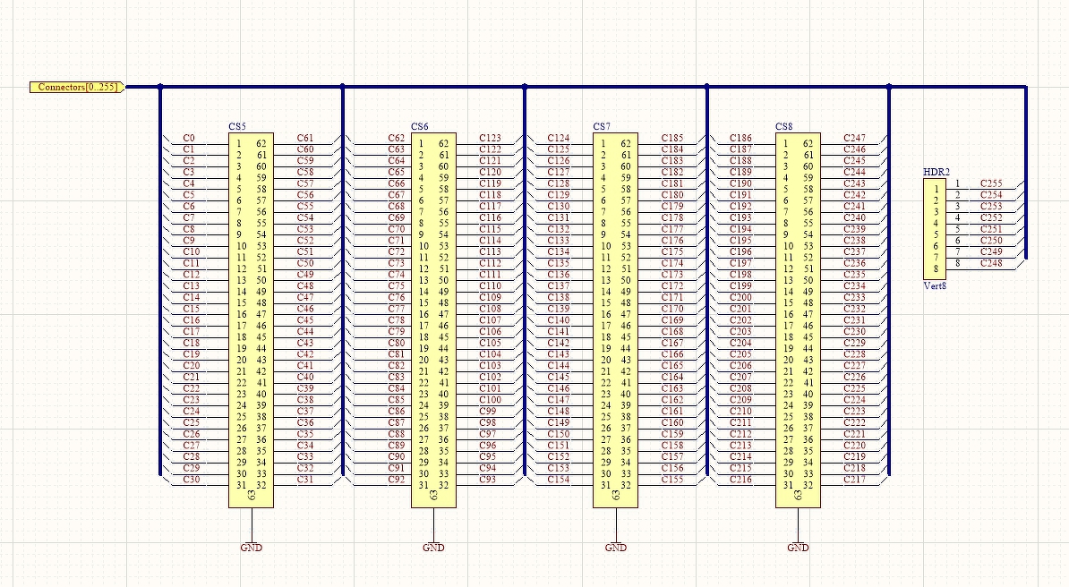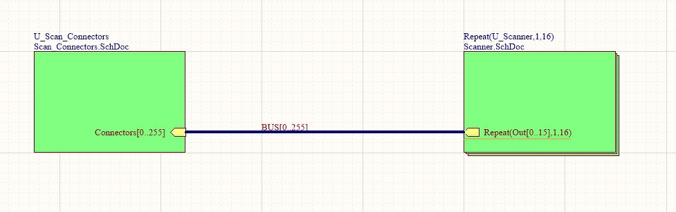 Van egy 256 pontos csatlakozó halmazom és egy 16 portos meghajtó áramköröm, amiből 16 darab épülne meg és ezek csatlakoznának a 256 csatlakozó érintkezőhöz (16x16). Nem akarom megrajzolni a 16 meghajtó áramkör kapcsolási rajzát, hanem az Altiumban használatos buszokkal és Repeat funkciókkal akarnám összekötni a két egységet.