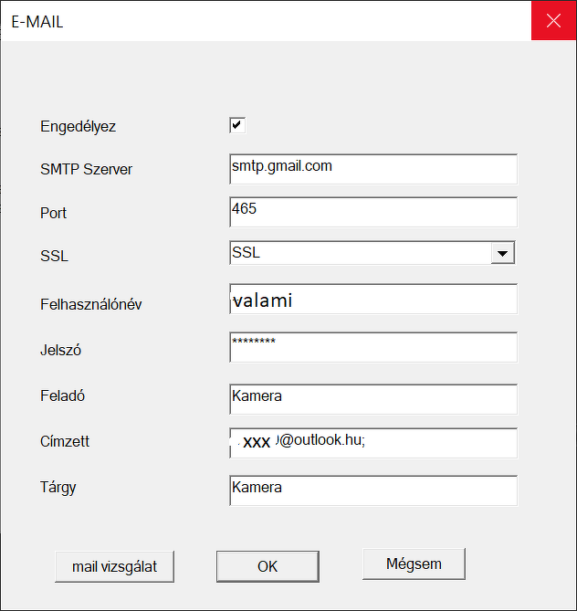 Nem gmail-hez kell, saját mail szerverünk van. Ennek a kamerának menüjében nem lenyitható a biztonsági rész, hanem egy pipát lehet rakni az SSL-hez és kész. De ez így nem megy.