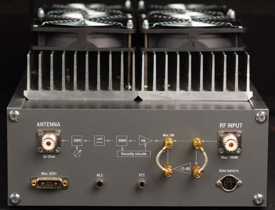 Kellett még egy szekvencia áramkör, ami a ki- és bekapcsoláskor meghatározott időrendben kapcsolja fel és le az egyes áramköröket, egy 13dB-es alacsony induktivitású csillapító a bemenetre, mivel a végfok meghajtásához elegendő 2-3W teljesítmény.