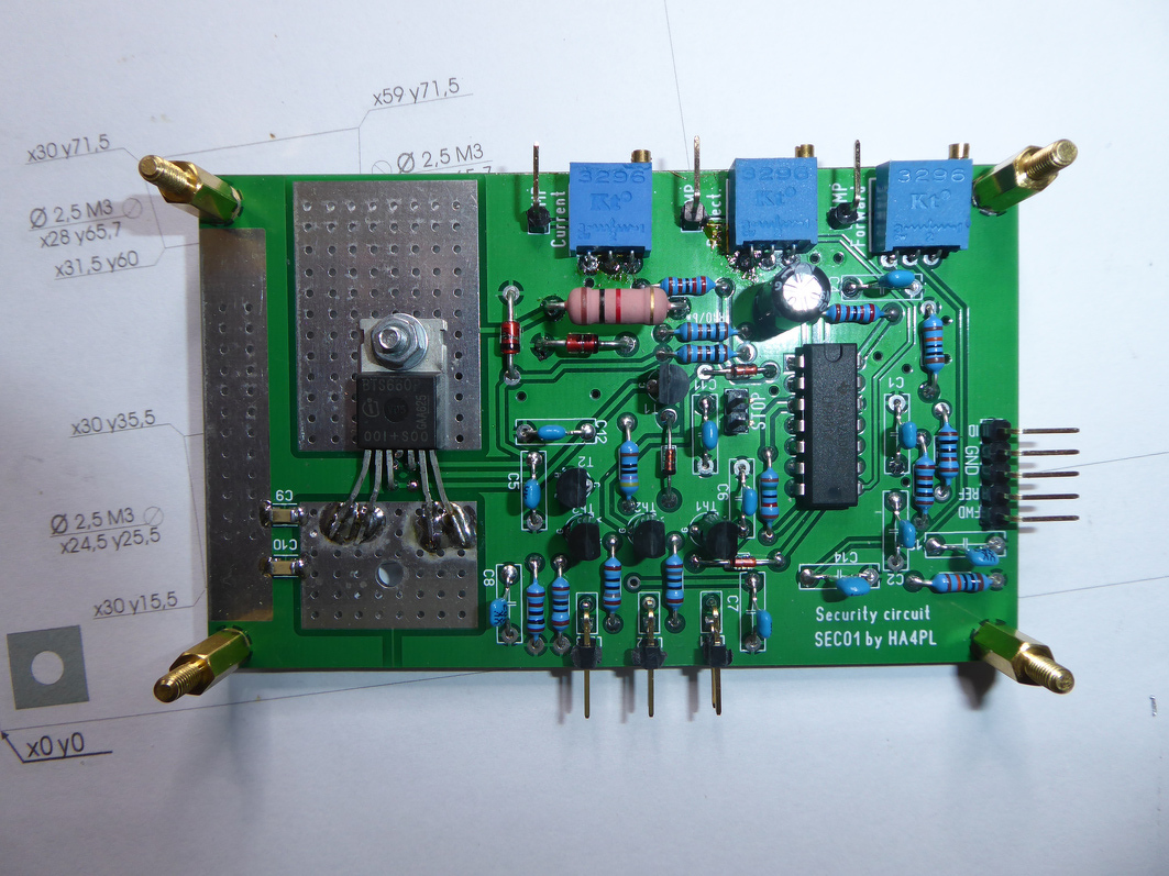 Kellett még egy szekvencia áramkör, ami a ki- és bekapcsoláskor meghatározott időrendben kapcsolja fel és le az egyes áramköröket, egy 13dB-es alacsony induktivitású csillapító a bemenetre, mivel a végfok meghajtásához elegendő 2-3W teljesítmény.
