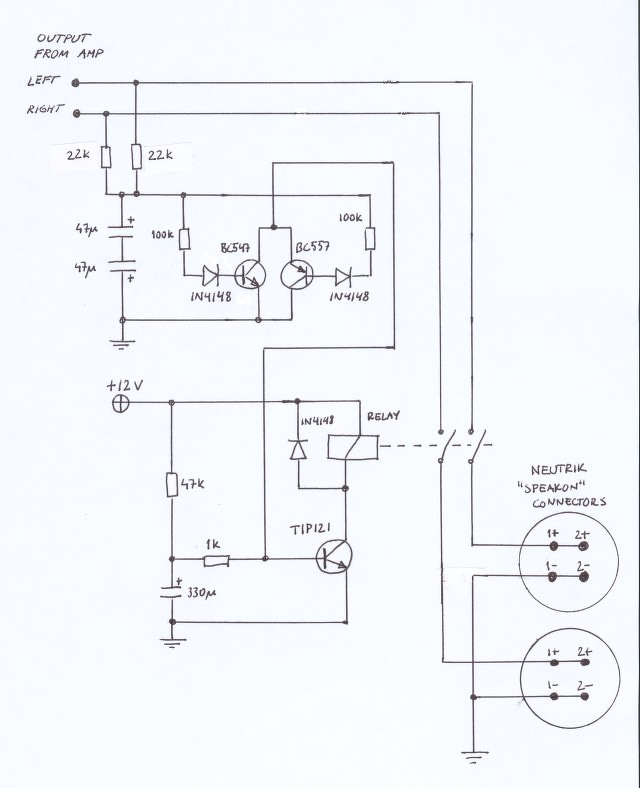 Segítséget szeretnék kérni. Építettem egy egyszerű hangszóró védelmet, szépen működik semmi gond vele csak az a baj hogy ha beépítem és rá kötöm az erősítő kimenetét a relé nem húz be. A lényeg hogy a kapcsolás valamiért túl érzékeny. Az erősítő rendben van +- 50mVolt van a kimeneten maxiumum ami szerintem rendben van. Tudnátok segíteni mit módosítsak hogy csak később oldjon a relé egyenfeszültség megjelenése esetén.